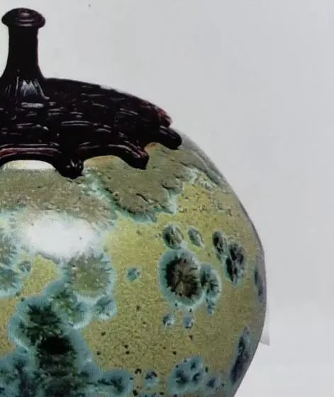 灵感来源于中国古代陶瓷的窑变纹样。作者在底层用棉和纱染色,上面钉上裁剪和粘合成放射状花型的色纱,再散布大小珠子。面料的色调和材质巧妙的搭配,模仿陶瓷的纹样。