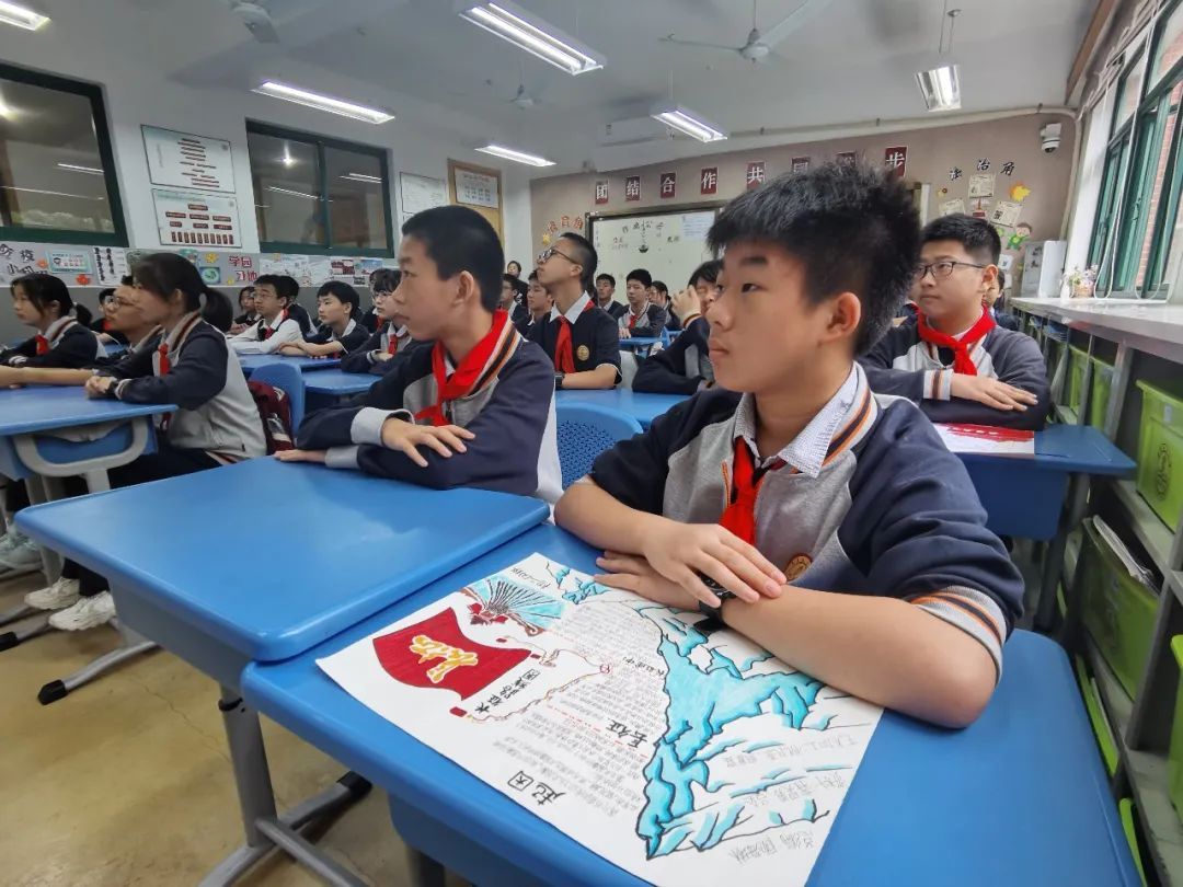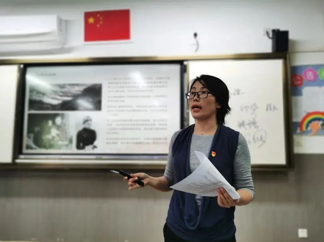 许盈银是一名语文老师,她在初二(2)班的这节党课的题目是《弘扬伟大的长征精神》。课堂上,许盈银从暑期安排学生们阅读的《红星照耀中国》说起,结合大家专题探究后做的以“长征”为主题的阅读小报,开始了整节课程。