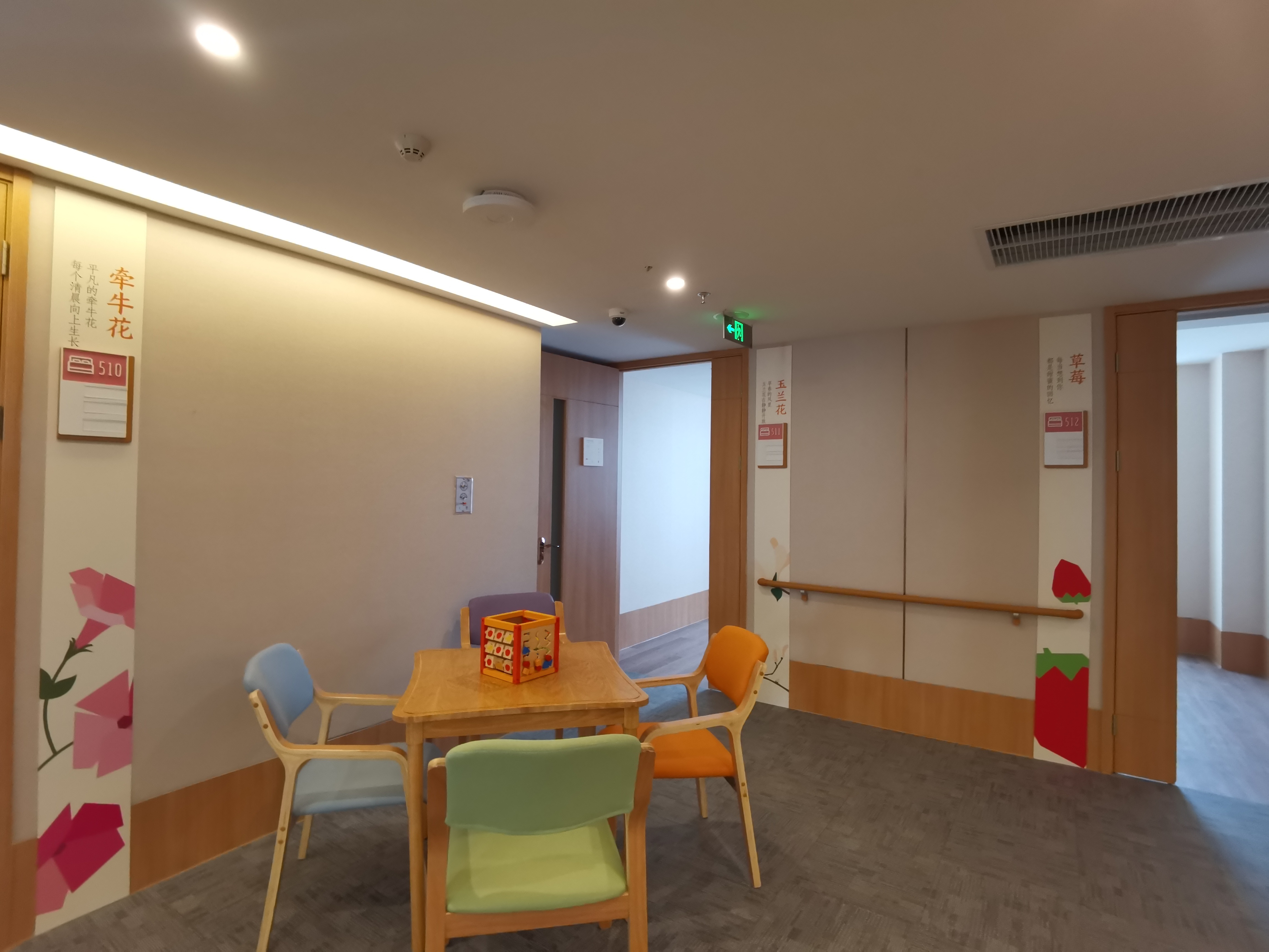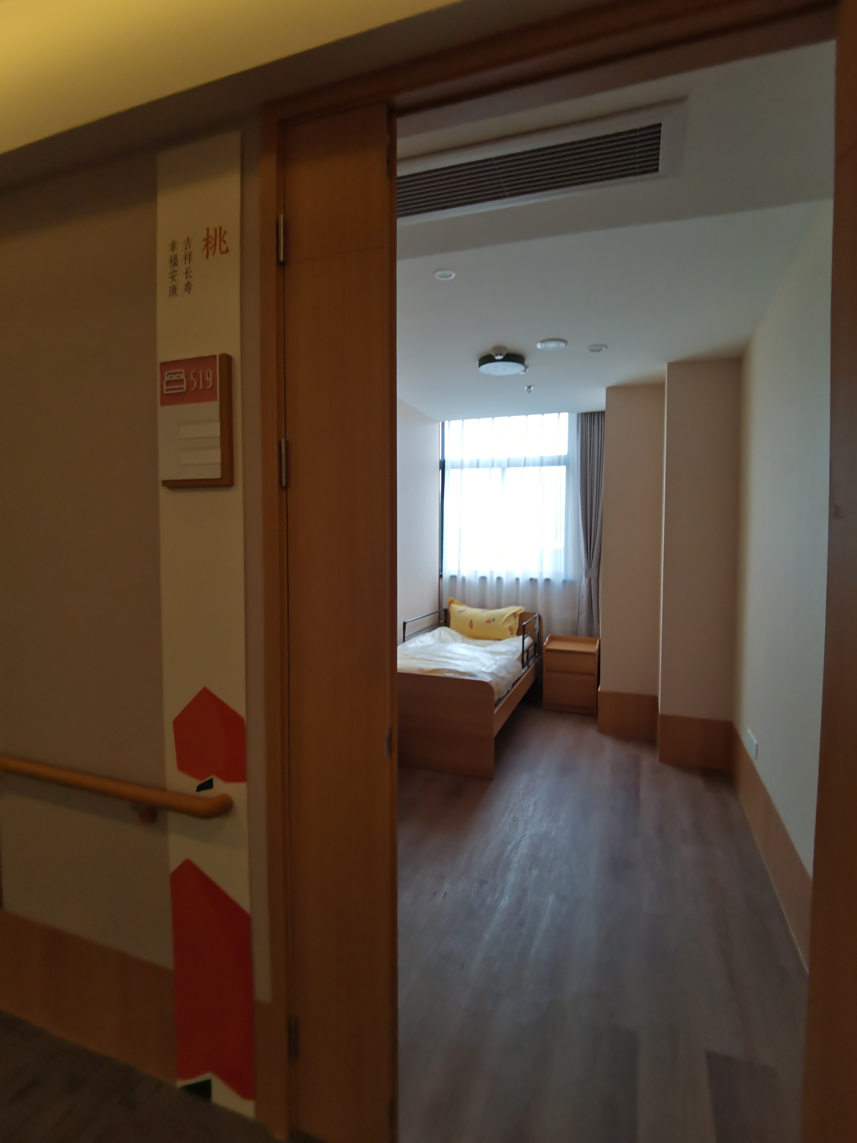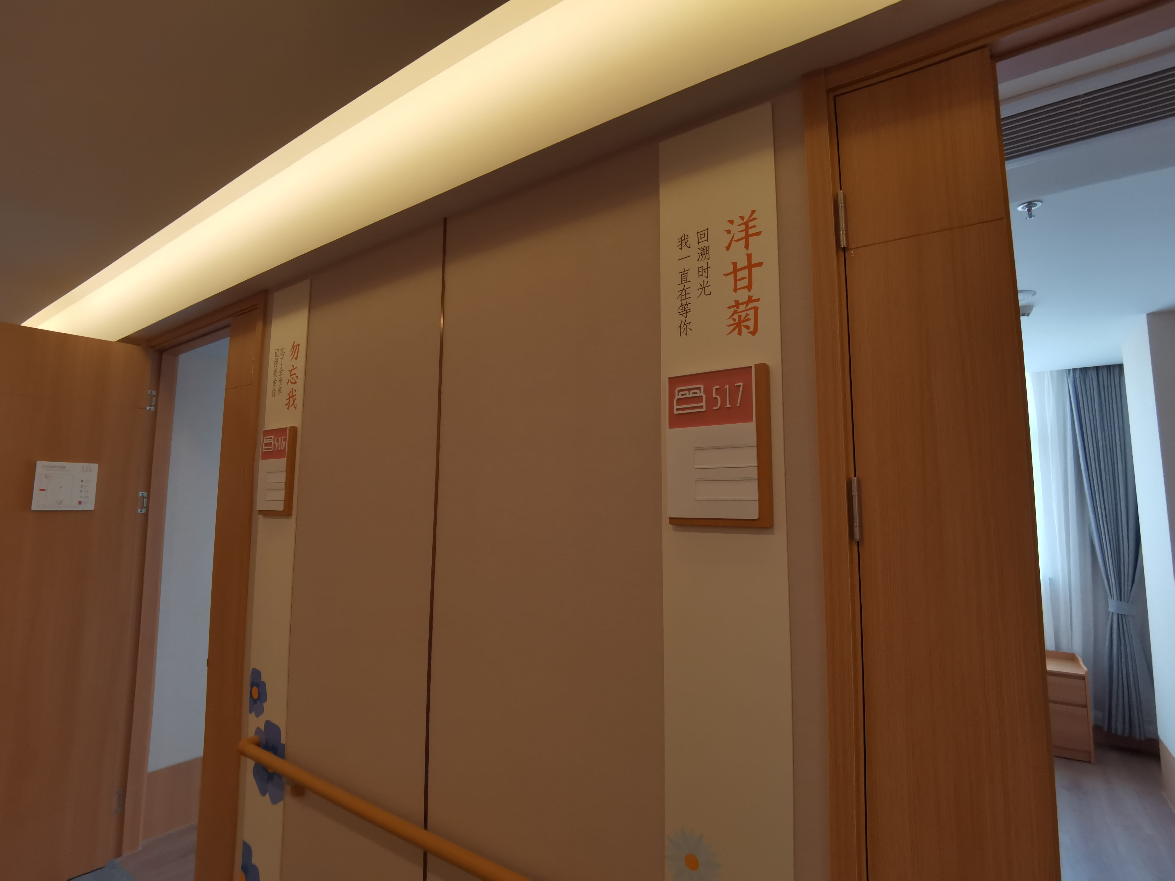 走进5楼长者照护之家,映入眼帘的是窗明几净的房间、整洁温馨的被褥、适老化设施完备的卫生间。房间门口,房间号上各写着不同的花语,下方还有不同花的图案来区分房间,好似密码——洋甘菊:回溯时光,我一直在等你;勿忘我:忘了全世界,记得我爱你……其中这个尤其充满温情的区域则是给患有认知症的老人居住的,目前共有12个床位,房间门口用花朵图案来区分,也是延缓认知症老人病程的一种探索。
