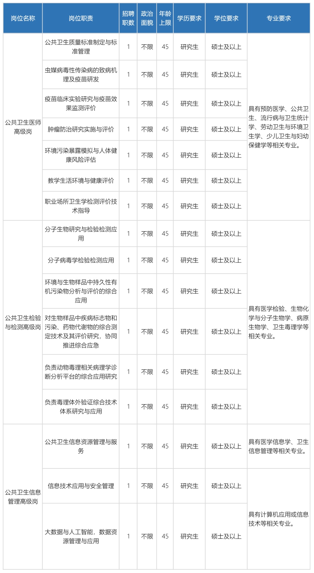 上海市疾病预防控制中心(以下简称“中心”)是实施政府公共卫生职能的核心专业机构,是城市公共卫生安全体系的主要组成部分。根据《上海市事业单位公开招聘人员办法》[沪人社规(2019)15号],按照公开、平等、竞争、择优的原则,面向全球公开招聘高层次专业技术人才。现将有关事项公告如下: