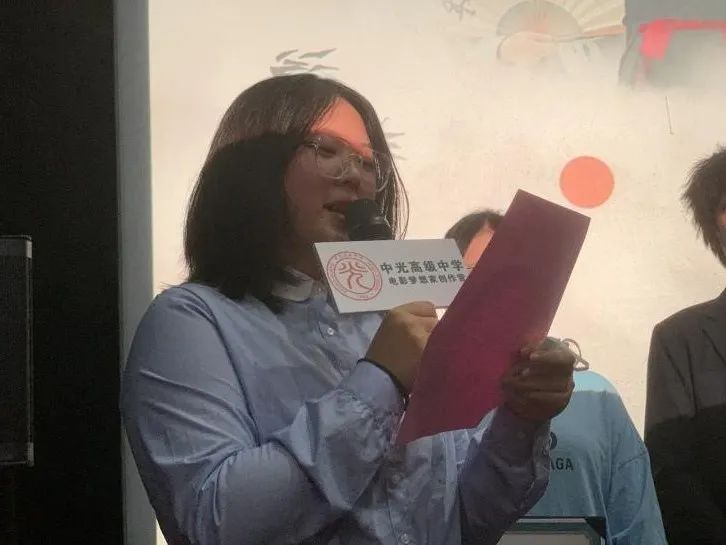 红毯仪式结束后,首先由上海电影集团的陈勇导演发表致辞,并与中光高级中学副书记、副校长吴斌一起为第一期的营员们颁发证书。第一期营员代表进行发言,与大家分享了在微电影拍摄过程中的收获。