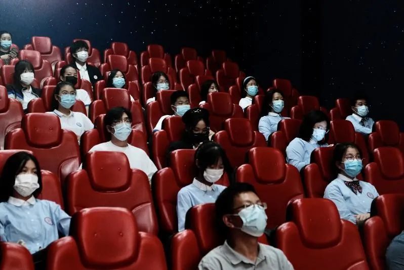 最后,两期营员和带队的老师们一起在影院门口合影留念。