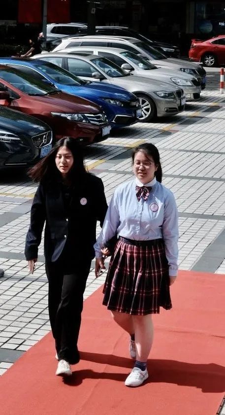 在嘉定影剧院门口,同学们第一次进行了“走红毯”仪式,体验了一把当“明星”的感觉。