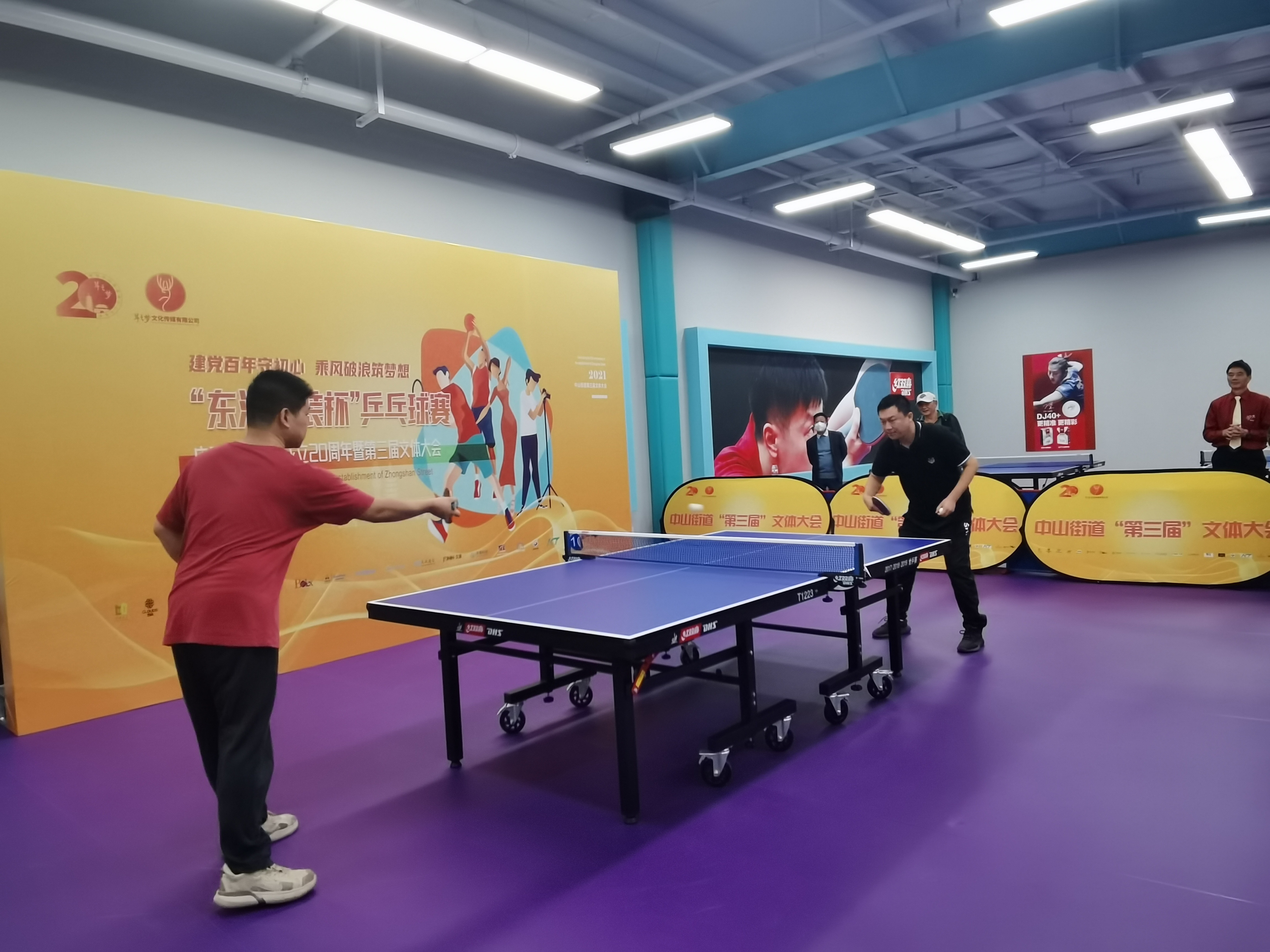 乒乓球比赛开赛前,上海乒乓球男队主教练张洋和运动员代表为比赛开球。据悉,此次乒乓球比赛共有来自59家单位的138位选手参加,在几个小时的比赛里争夺男子和女子单打桂冠。活动中,上海市乒乓球协会主席王一平向大会赠送了书籍和签名乒乓球拍,并在致辞时对中山街道举办群众性乒乓球比赛表示赞许。