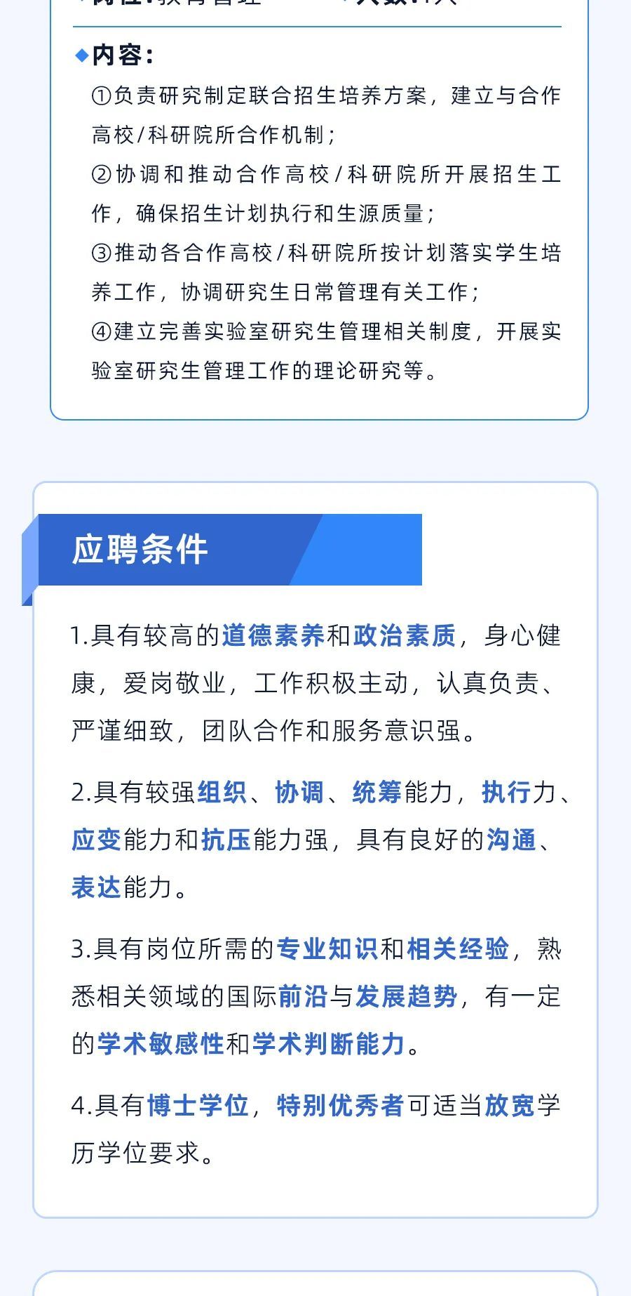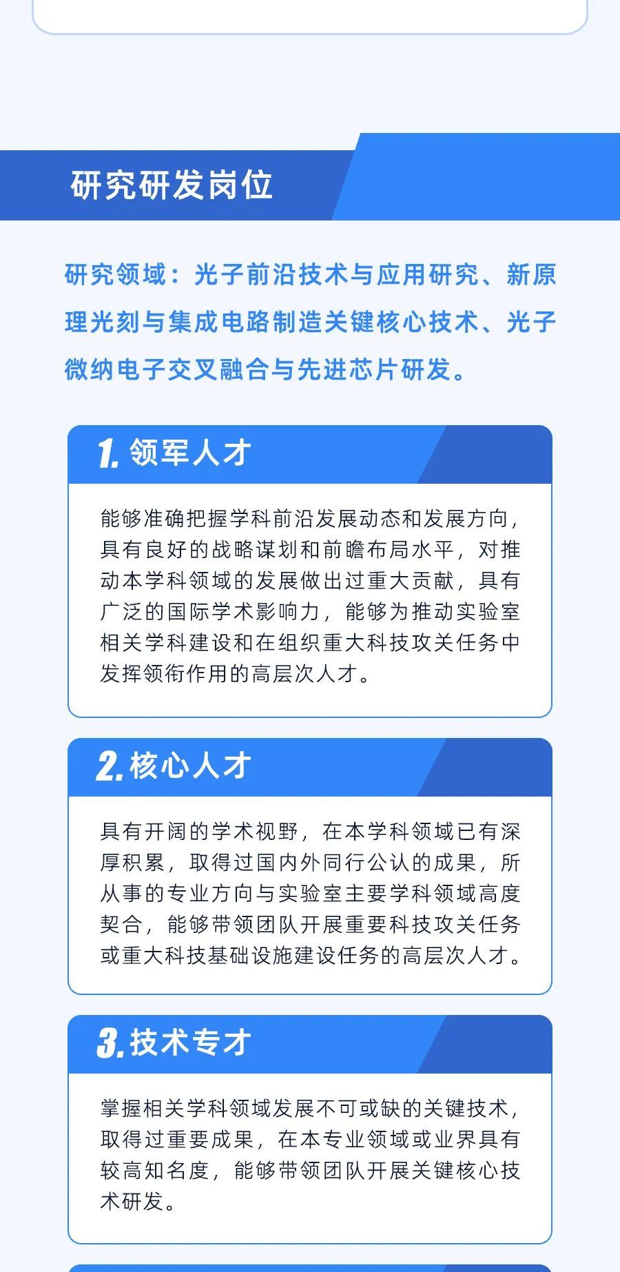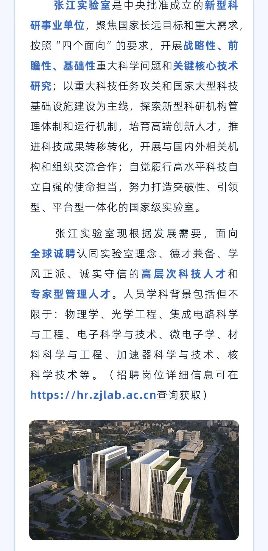 张江实验室正在面向全球招募物理学、光学工程、集成电路科学与工程、电子科学与技术等领域人才,职位包括领军人才、核心人才、技术专才、骨干人才、博士后等。此外,还公开招聘科技管理人员若干人,招聘岗位涉及项目经理、项目主任、战略规划等。详细报名方式见下文↓