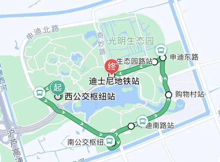 离开景点:至迪士尼申迪西路西公交枢纽站,乘坐浦东70路