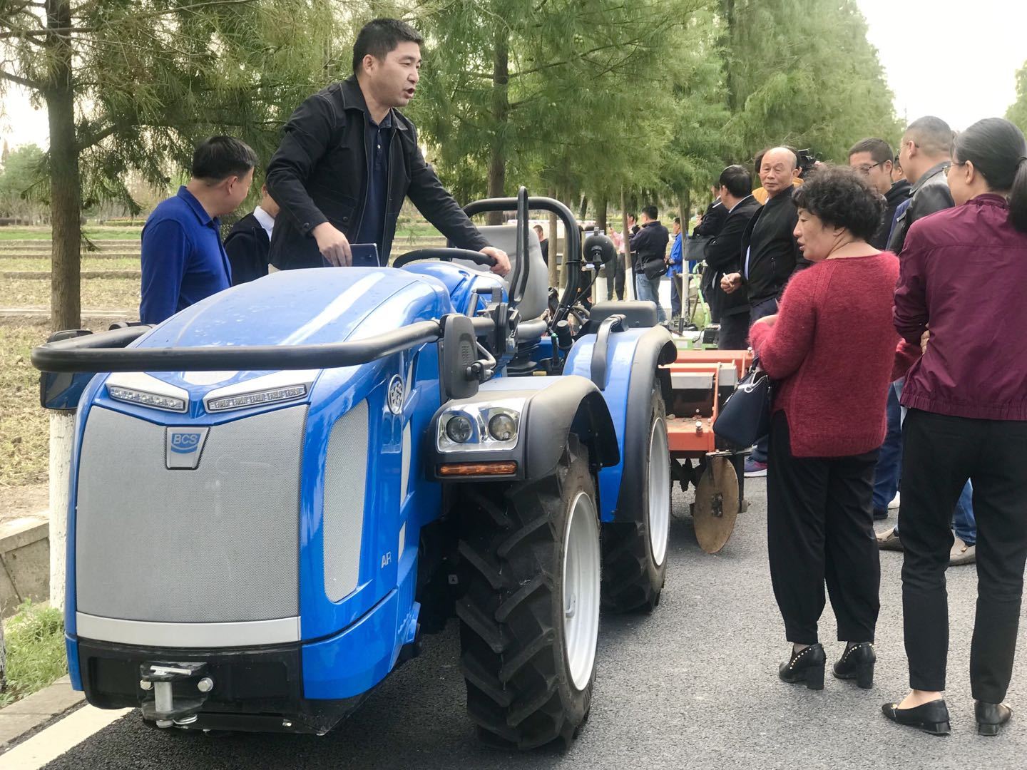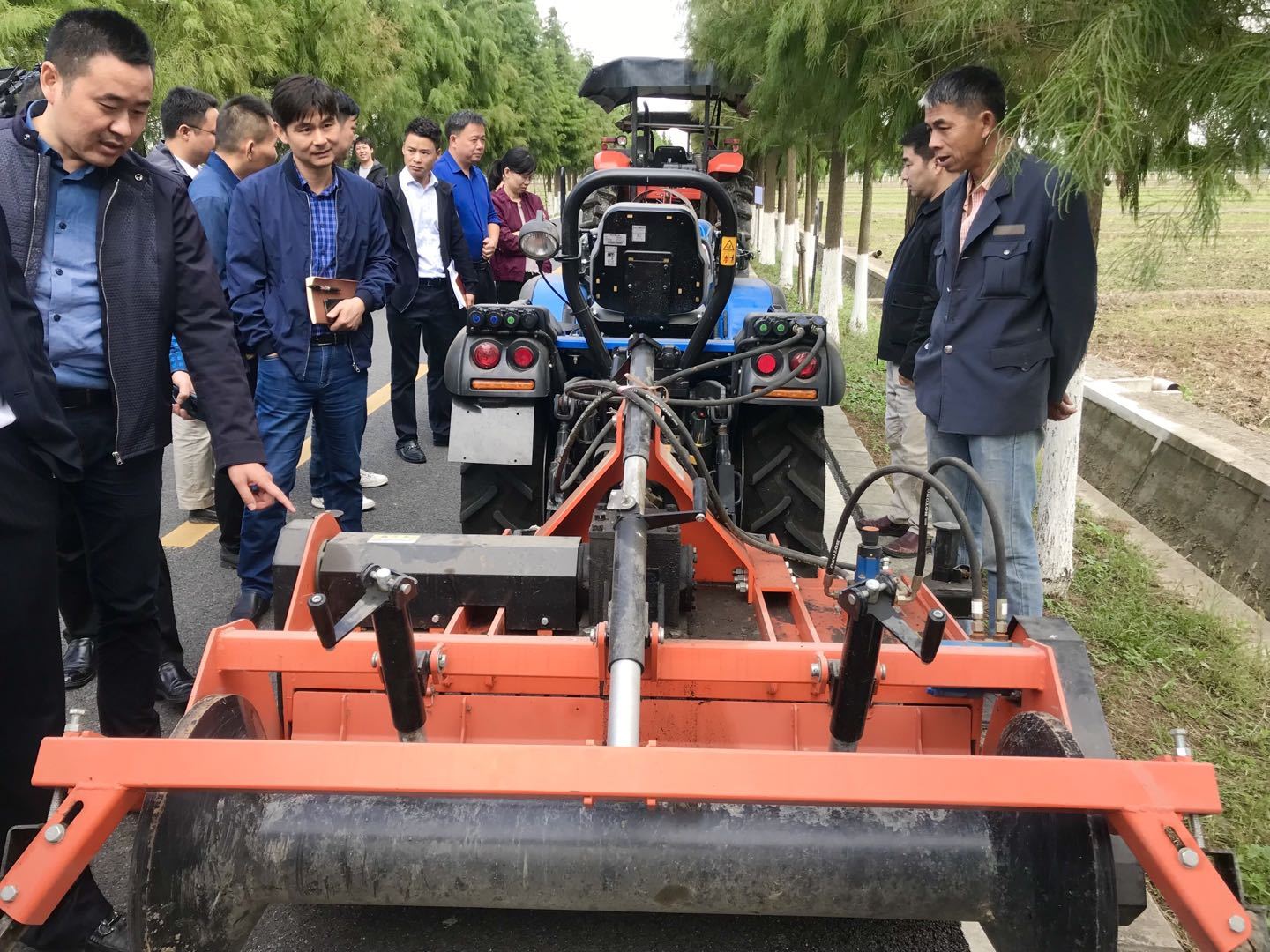 伴随着机械的阵阵轰鸣声,今年的“三秋”农业工作现场会在小昆山现代农业示范园区拉开序幕。旋耕灭茬机、开沟机、电动蔬菜播种机……一台台颜色鲜亮的现代化农机在宽敞平坦的机耕道上一字排开。而在一旁已经完成收割的农田区域,空中来回穿梭的植保无人机、地面匀速前行的履带式植保车和矫健向前的撒肥车同样吸引着众人的目光。