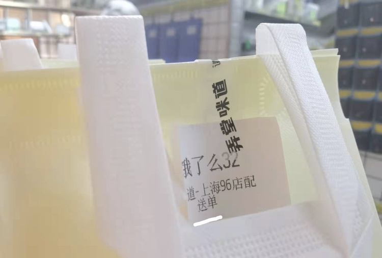 比如,弄堂咪道采用的就是撕拉式白底黑字的透明胶带,上面印着“请确认封条完好,尽快食用”。在包装时,店员仅将胶带粘贴在袋口上作为“封条”。