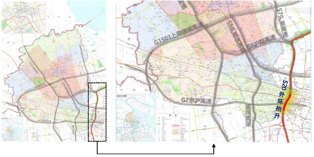 除此之外,S20外环的真新街道和江桥区域还将实施抬升工程,形成地上高架、地面公路的立体交通网络。而市民最为关心的嘉闵联络线项目目前也已经落地。