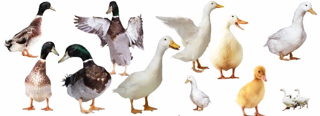 鸭子和鹅都是雁形目鸭科成员,大部分的家鸭由鸭属中绿头鸭和斑嘴鸭驯化而来的,个别相貌特殊的,如番鸭,是疣鼻栖鸭驯化来的。中国的大鹅是由鸿雁驯化而来,欧洲的大鹅则是灰雁驯化来的,都是雁属。广东的狮头鹅,是世界最大的鹅品种。
