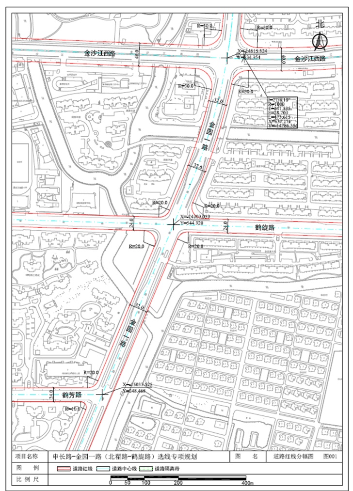 申长北路-金园一路(北翟路-鹤旋路)规划红线宽32米。(见图1)