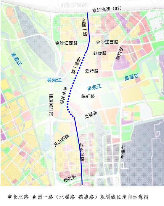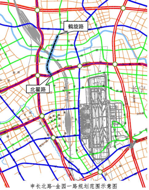 申长北路-金园一路是虹桥地区南北向干路,是虹桥商务区与嘉定区江桥镇交通出行的主要道路。