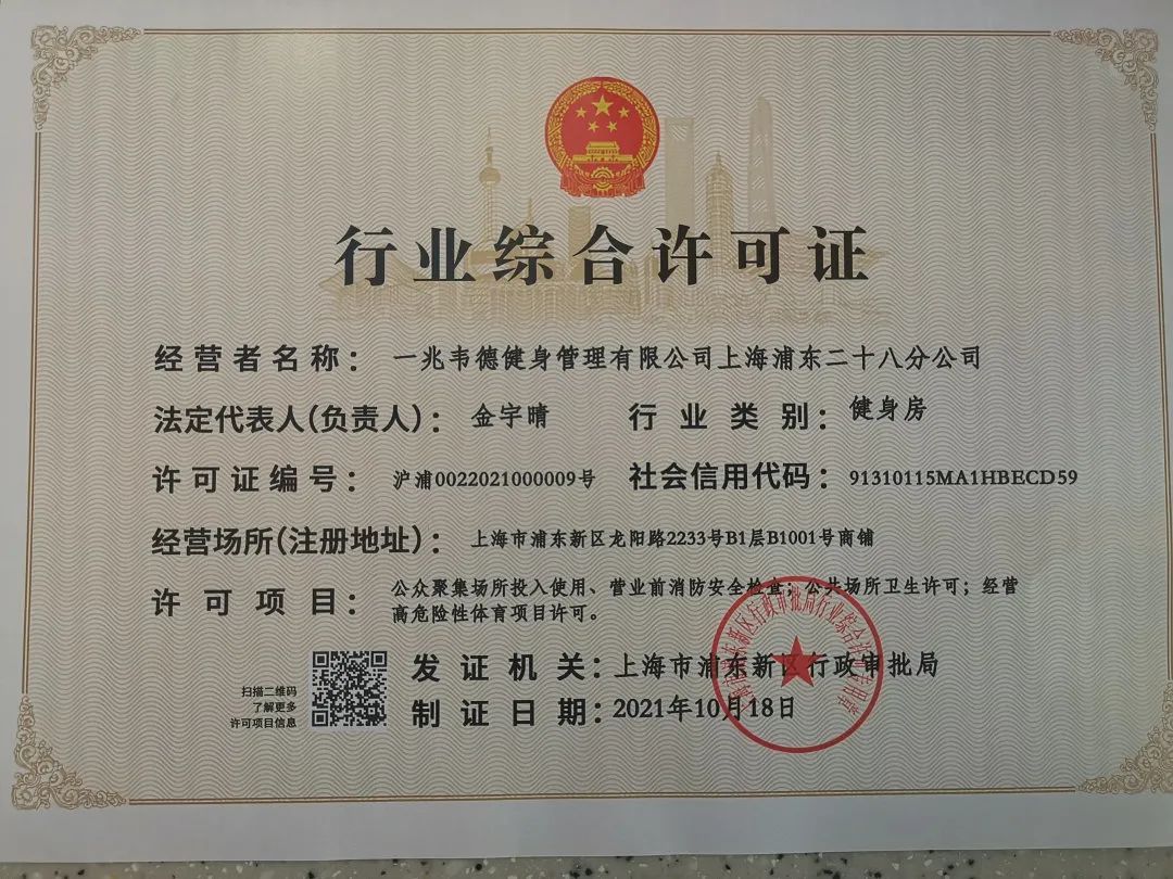 10月19日,一兆韦德健身、MANNER咖啡等企业代表,获颁首部浦东新区法规出台后首批“升级版”行业综合许可证,标志着浦东新区“一业一证”改革进入新阶段。