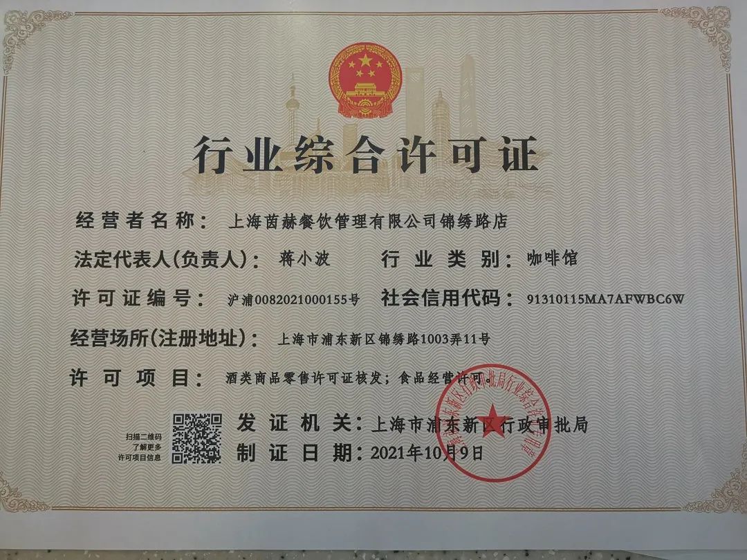 “公司申办的许可证都要上墙,对外出示,以前好几张,挂起来都很麻烦,现在一张证就行了,简单明了。”茵赫餐饮(MANNER咖啡)法定代表人蒋小波笑着说。