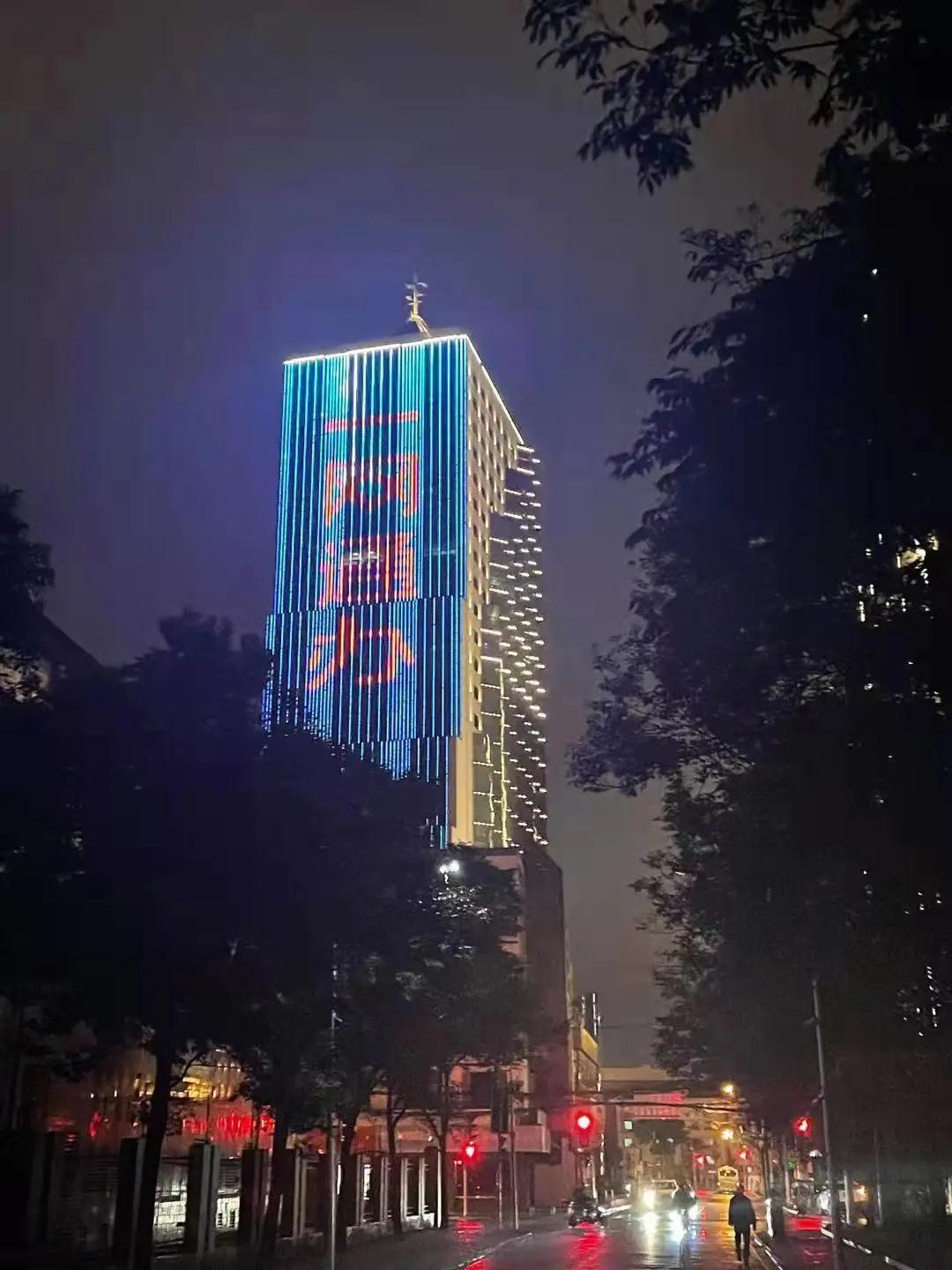 在吴淞大桥北侧同济大厦墙体南立面,将“一网通办”宣传画面与媒体墙灯光秀展示相结合,营造地标性宣传效果。