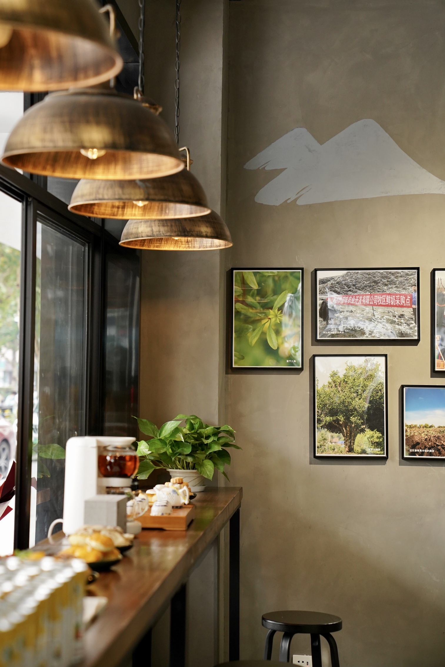 临街的位置开辟出一排吧台位,居民可以买一杯咖啡坐在窗边欣赏来往的风景,十分惬意。