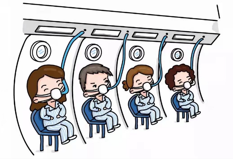 升压后就是吸氧的过程,持续约一个小时,佩戴面罩自然呼吸即可。此时舱内很安静,双耳鼓膜也已经适应了舱内的压力,只听得到呼吸的声音。因为手机不允许带入舱内,工作人员提醒我带了一本喜欢的书进来,吸着氧一边静静阅读,真是一个不错的选择。