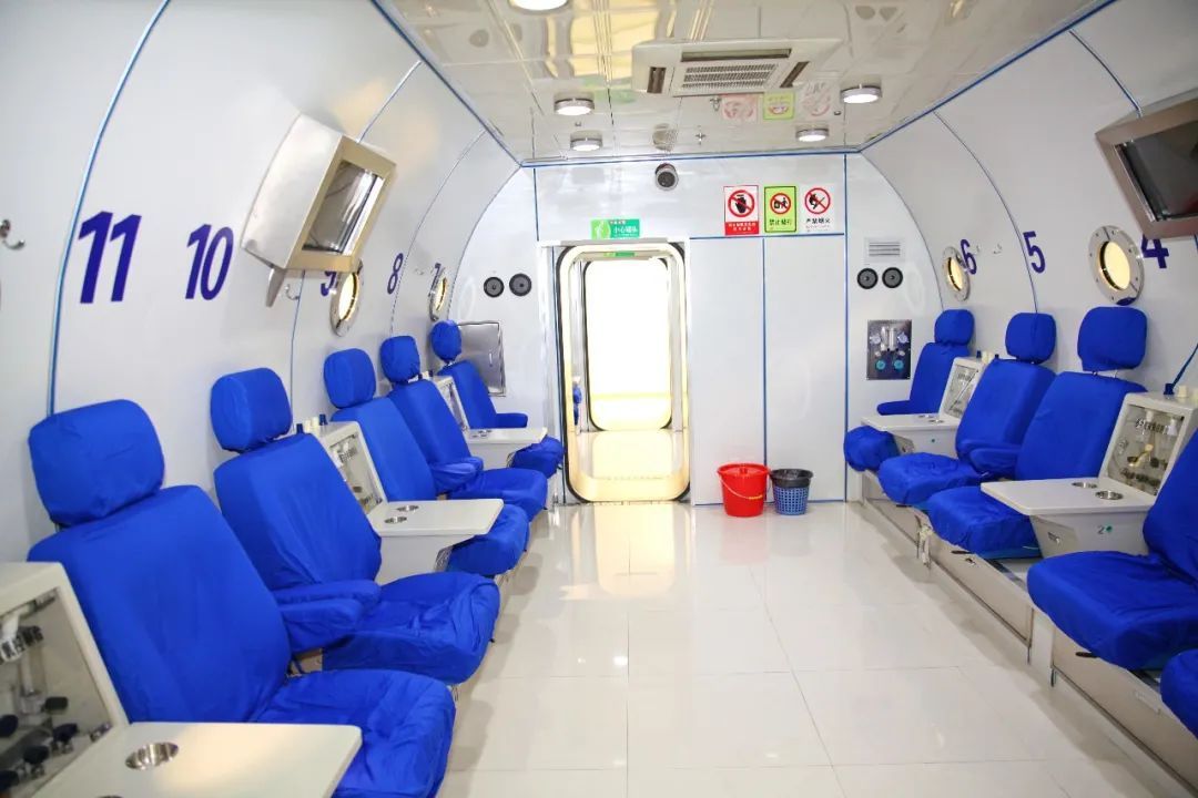 进舱后先是升压的过程,舱内压力缓慢升至2个大气压,就是在大气压的基础上再额外增加1个大气压。