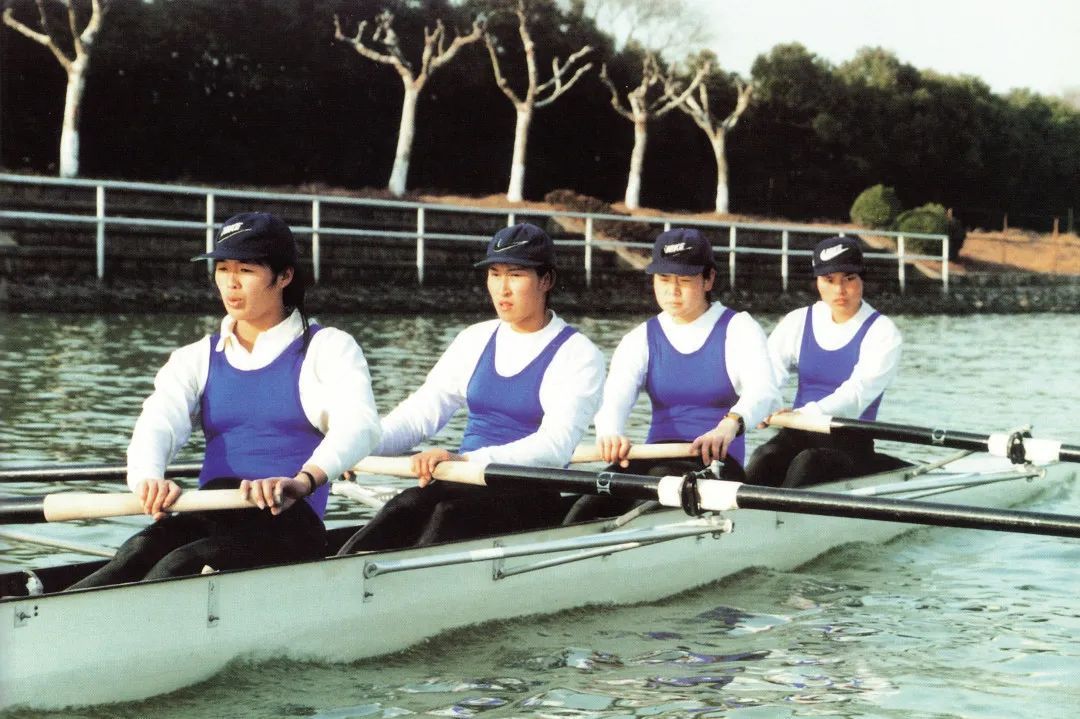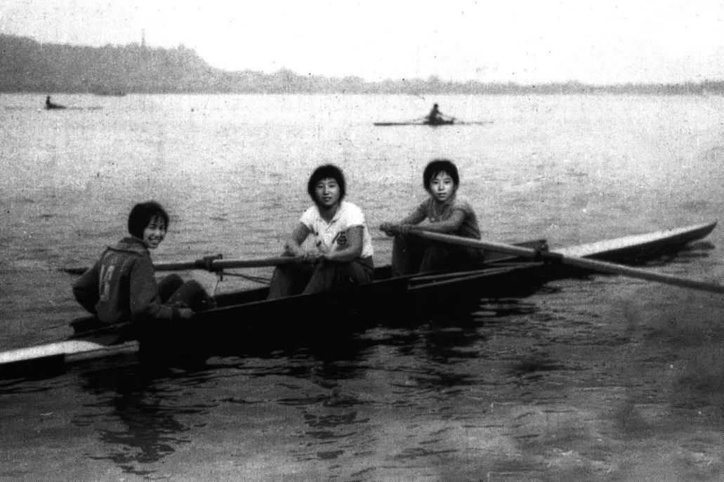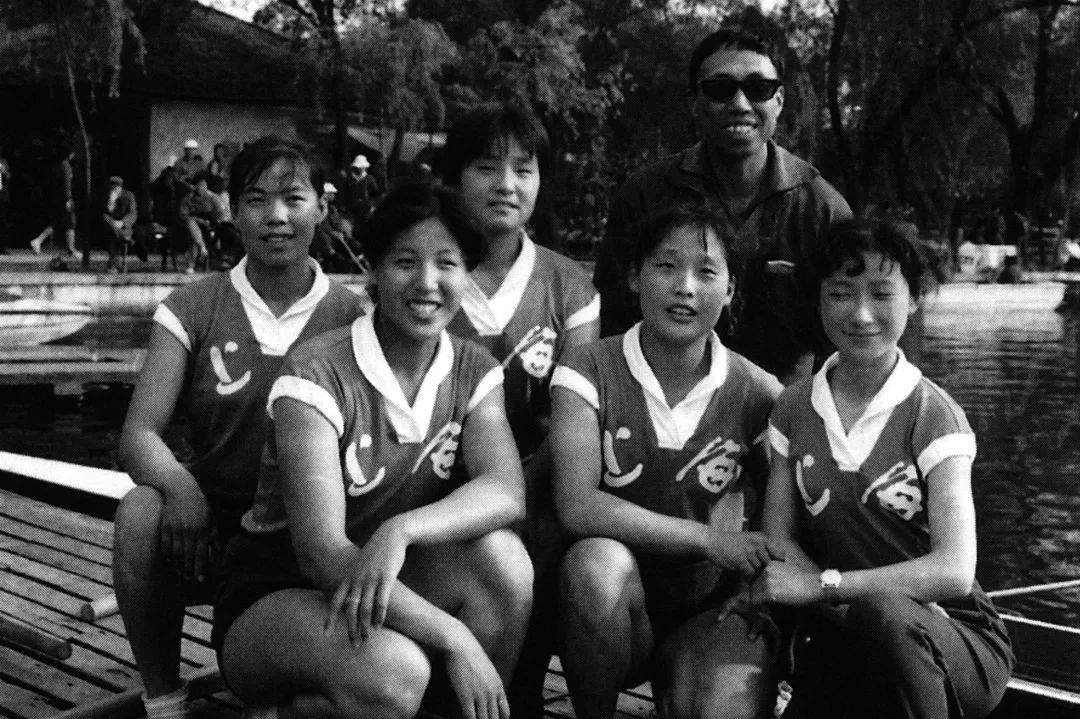 1979年,上海赛艇运动员黄美霞、郑益芳、张黎明(舵手)、陈昌凤、朱崇娣在第四届全国运动会上获得女子四人单桨有舵手冠军