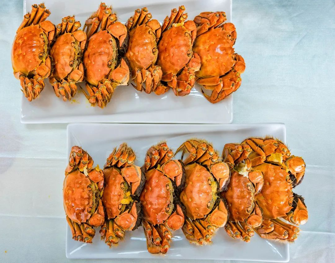 “今年气温一直偏高,入秋晚,所以开捕时间不仅比市面上晚,比去年自家也延迟了一周;一定要等气温降到20摄氏度以下,蟹运动量减少,才到‘贴秋膘’的时候,再经过十天到半个月,性腺发育更成熟,蛋白质含量增加,才能膏黄肥美。”该合作社相关负责人顾怡说,“但市场完全没有受到影响,今年,总产量在9万公斤,国内市场已经预定出了8万只,出口日本、韩国订单已达1.5万公斤,占总产值约50%。”
