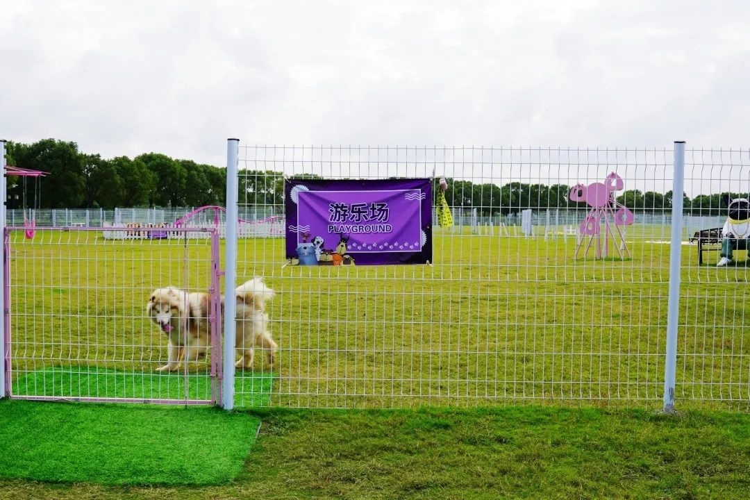 走进“我的亲宠乐园”,就可以看到宠物游乐场,那是超200多亩的大草坪,四周设立了严实的防护网,在这里,狗狗们可以不用牵绳,撒了欢地疯跑,尽情释放天性……