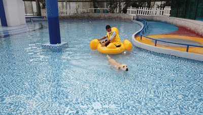 在现场,小编遇到了来自浦东的马女士,她特意带着自己的金毛犬来这里游泳。“因为我家的狗有骨骼问题,游泳可以使它僵硬的关节得到放松,对关节康复有利的,正好在大众点评上看到这里有狗狗泳池,就带狗狗来了。”