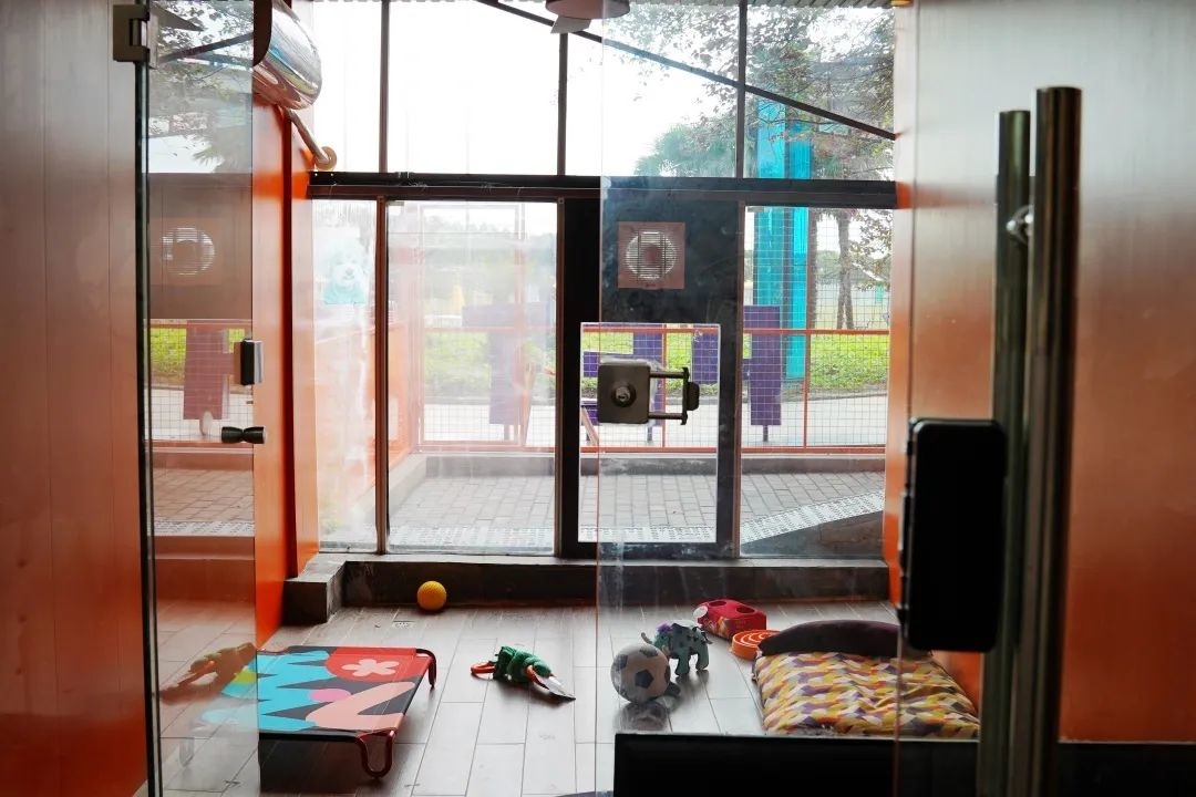 宠物酒店采用无笼式寄养模式,包含三个房型,内设空调,对流空气系统,新风系统等来降低房内潮湿以便防止狗狗在寄养期间得皮肤病,还有24小时监控可以随时通过手机APP看到狗狗,每间房间配备了专业的宠物管家。