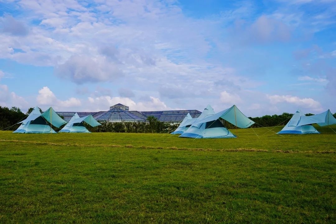 在“我的亲宠乐园”的右前侧是轻奢帐篷露营基地,既有优质草坪,又靠湖畔,环境非常隐秘和清幽。