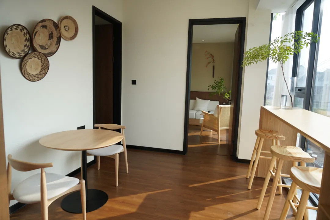 据了解,该精品民宿立足集田园观光、亲子研学、乡村度假、民俗体验等功能为一体,按照高星级度假酒店的客房标准建造。民宿拥有客房共6间,还配备了多功能厨房,环境优美的茶室、书吧,以及充满童趣的小菜园,能够满足不同形式的休闲和娱乐等需求。该民宿目前室内软装已基本完成,目前正在进行对外围景观的完善,预计11月开门迎客。订房价位上,将分为按整层或整栋出租两类,整层(两间)价格为1700元起,整栋出租价格为6800元起(周末、节假日略微上调),将为亲子家庭,闺蜜组团来朱泾旅游小住提供新选择。