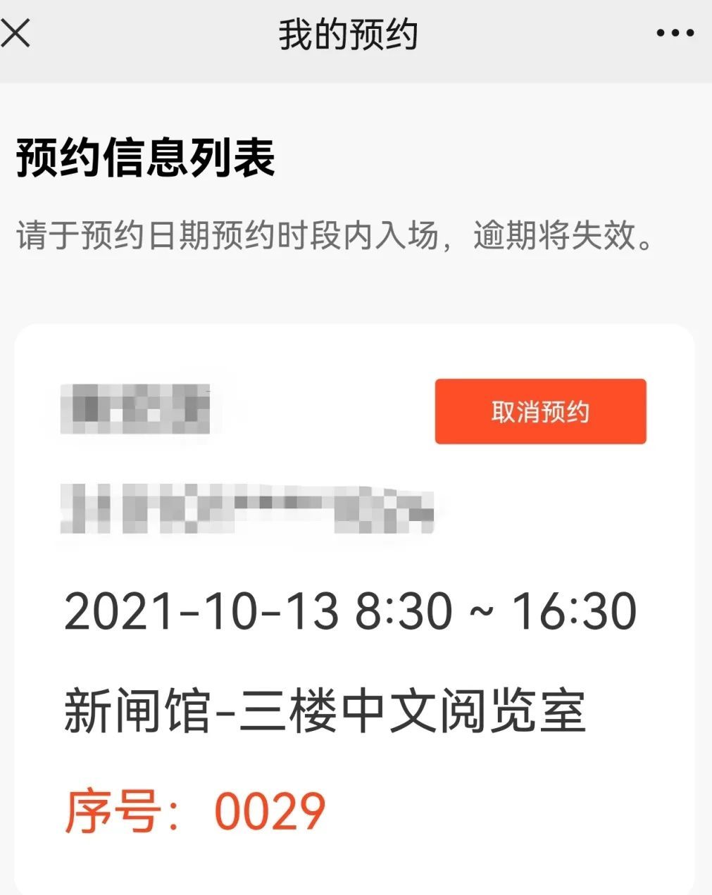例如:已预约周四,后发现无法到馆,可在周四中午12:00前取消预约,将座位留给需要的读者。