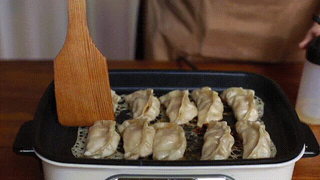 一锅鲜香美味的煎饺出炉