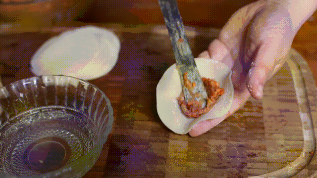 取饺子皮包入约12克馅料。