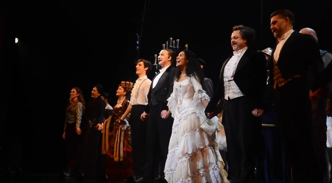 10月11日晚,《剧院魅影》(The Phantom of the Opera)剧组在演出结束后一起演唱《生日快乐》和《化妆舞会》,来纪念《剧院魅影》上演35周年。