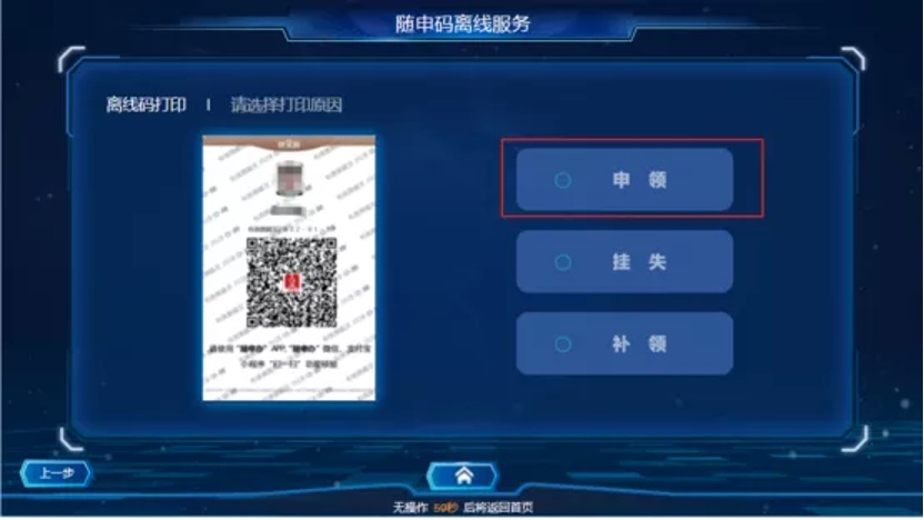 第三步:确认无误后,点击“申领”,通过自助终端打印“离线码”。