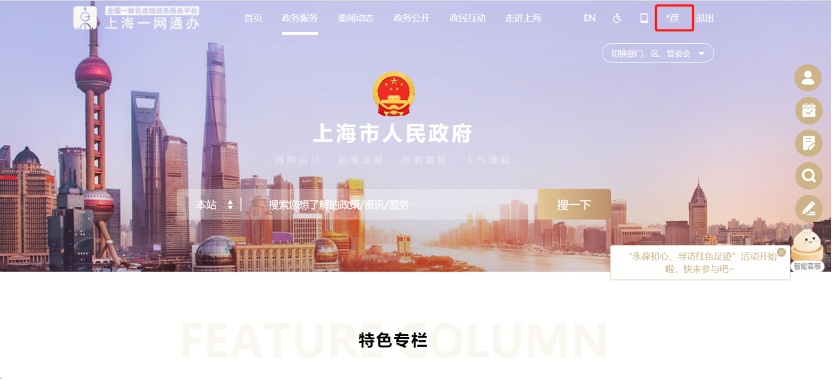 1.登录“一网通办”PC端(https://zwdt.sh.gov.cn/)。