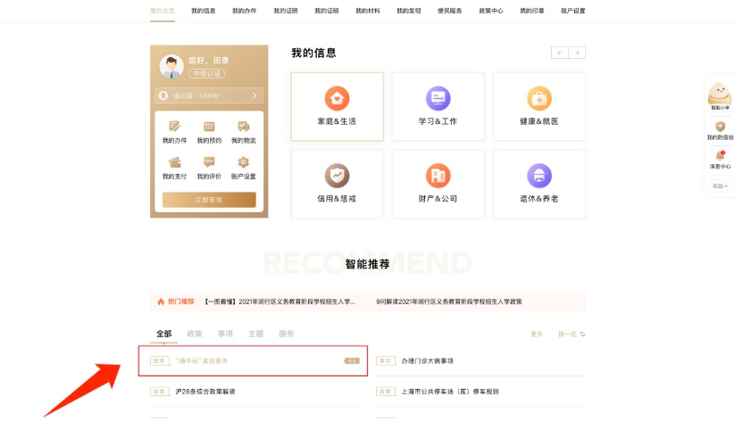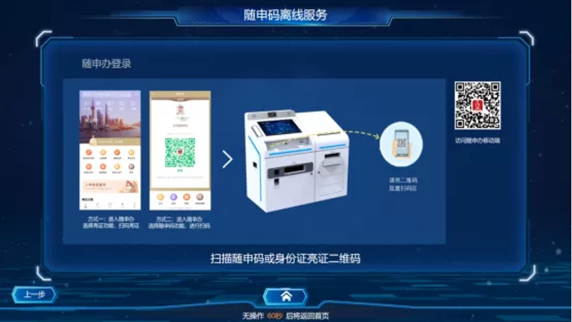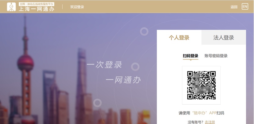 →随申办登录:在二维码扫码器处展示“随申码”,完成身份认证。