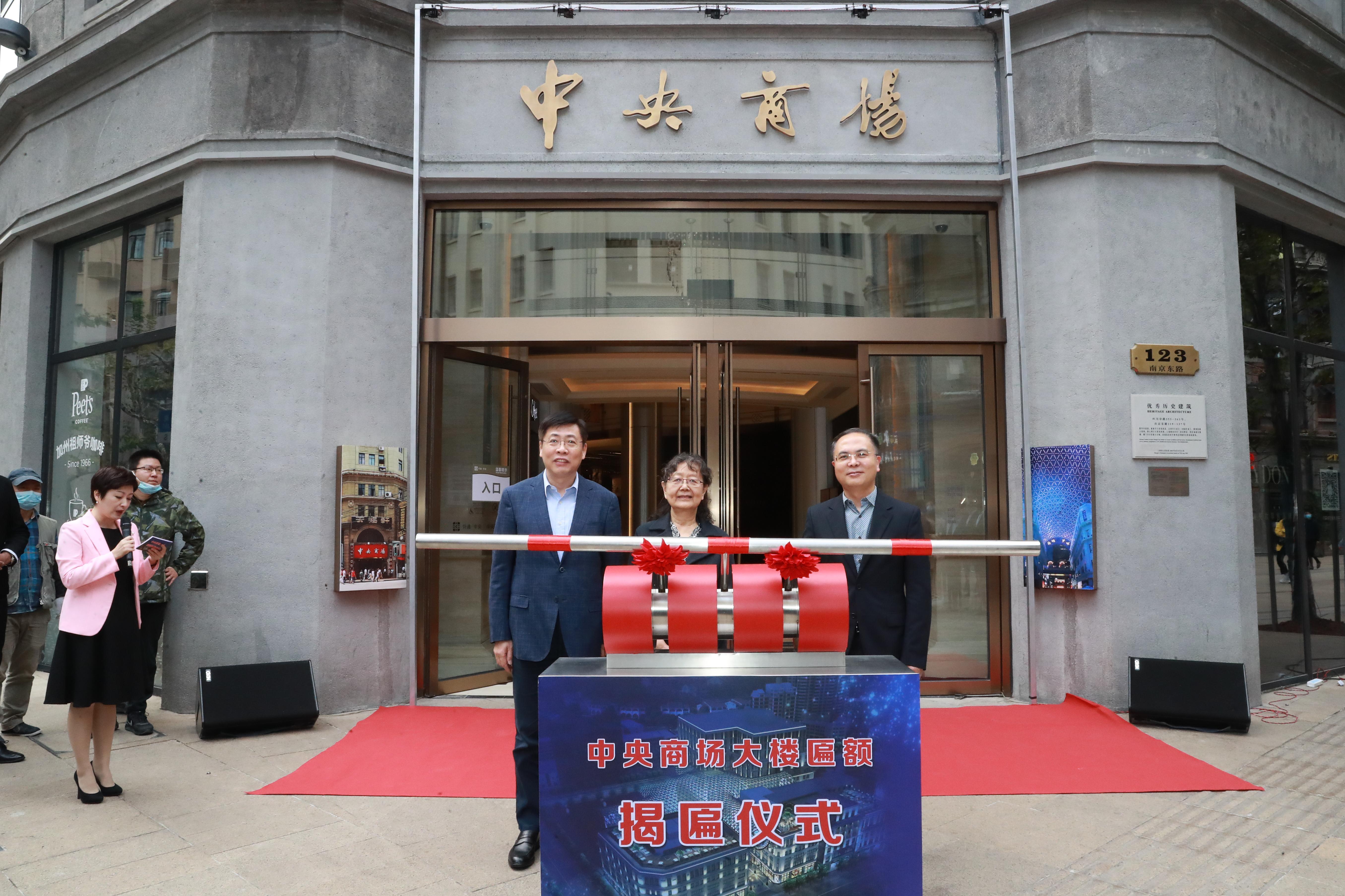 10月25日,中央商场大楼匾额揭匾仪式在外滩·中央举行,全新制作的郭沫若先生手迹匾额,重新悬挂上中央商场大楼门楣原位。郭沫若先生的女儿郭平英与黄浦区委书记杲云,区委副书记、区长沈山州为中央商场大楼匾额共同揭匾,还原郭沫若先生书写的“中央商场”真迹。