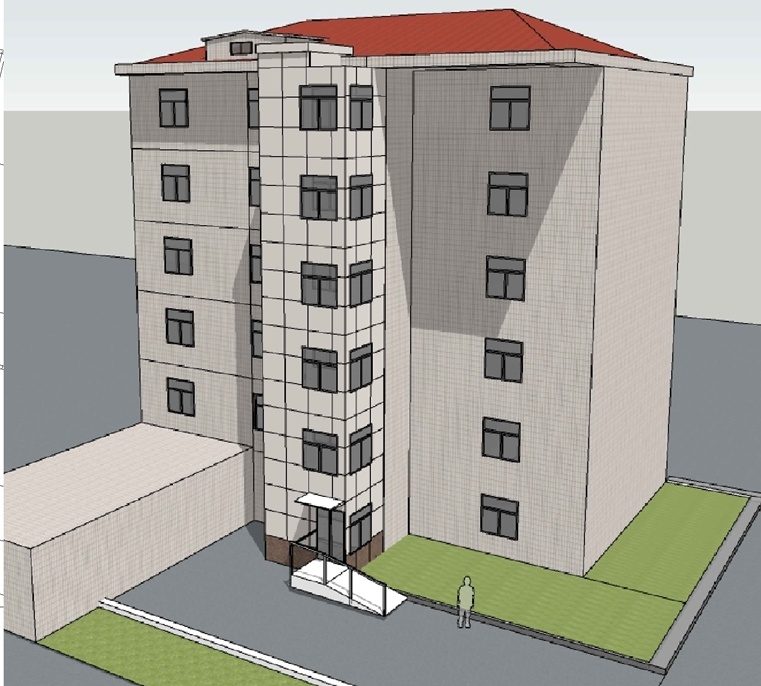 1.在本单元楼梯间北侧外部增设无机房电梯一部(设6站,半层入户)。
