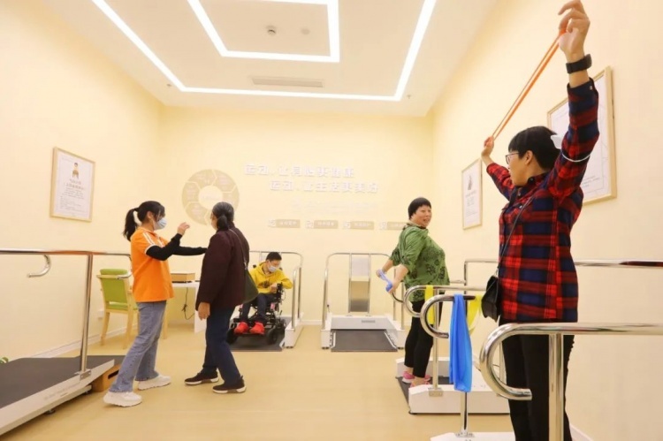 身体有残疾的情况也能开心健身。这里设置了不少适合残疾人的健身项目,比如全身垂直轮椅律动,可以坐着轮椅就能进行锻炼,防止肌肉萎缩、促进血液循环。