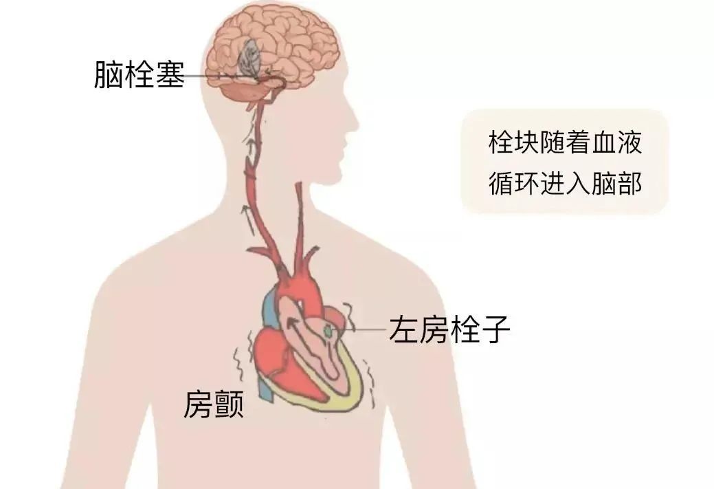 心房颤动患者,经常会在心房形成血栓,脱落后会随着血流流向全身各处,引起不同身体器官的缺血,比如上述的脑梗、下肢缺血。