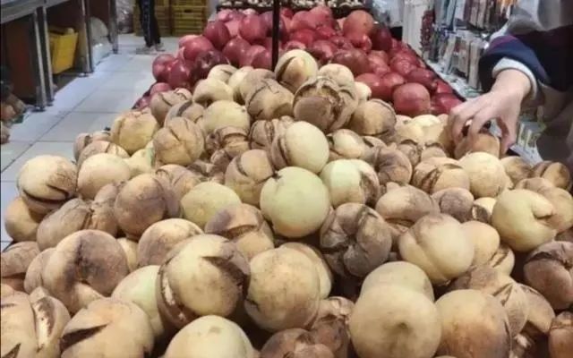 视频中,“爆炸桃”名副其实,每个桃子都是裂开的,而且颜色发灰发暗,长相的确是不大好看。虽然丑,但是价格不菲。