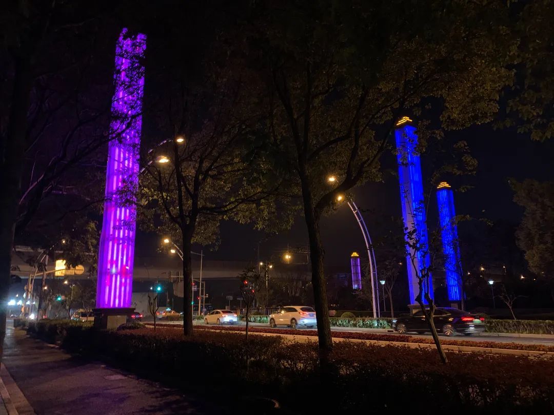 美兰湖是宝山罗店镇的核心景观区。最近,美兰湖路沪太路的路口处,八根巨型玻璃灯柱被重新点亮,成为美兰湖夜色中一道亮丽的风景线。