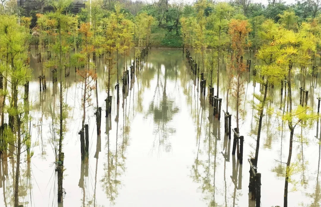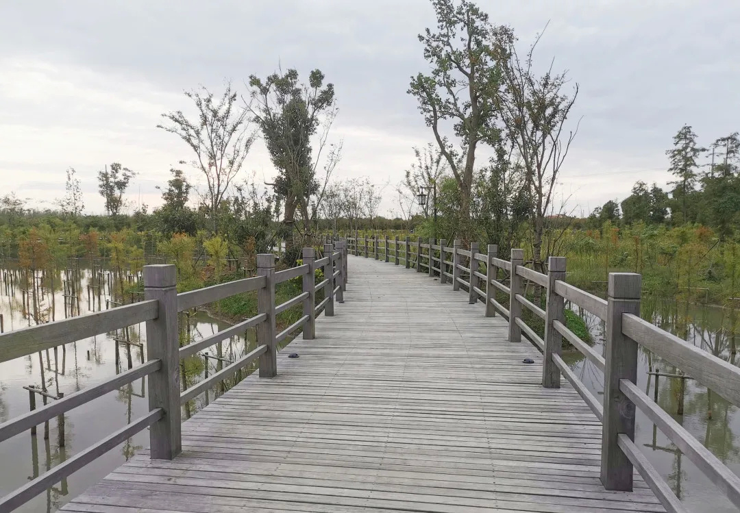 来到廊下郊野公园友好村村域内的农林水乡,四处清水溪流,绿意环绕。水上森林里,水杉倒影,波光粼粼。林间湿地,栈桥蜿蜒,一步一景。走在其中,不仅能欣赏到城市中少有的郊野风光,优美的自然生态环境也能感受乡间的宁静与质朴。