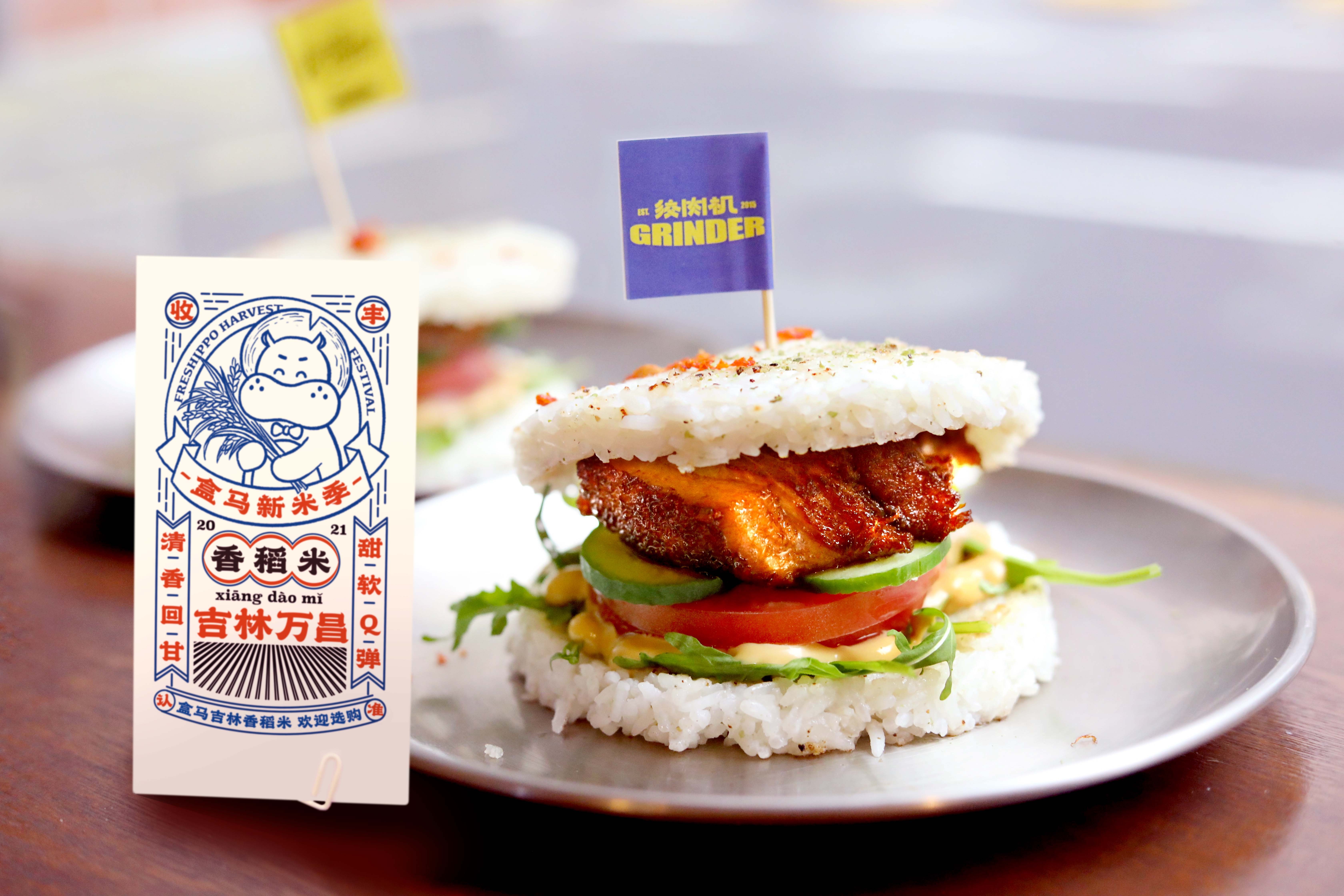 恰逢新米季,盒马和餐饮品牌合作推出了含有大米的食品和饮品:与“Nibbo 巧克力专门店”合作推出了“大米Dirty”饮品,与“绞肉机汉堡”合作推出了大米汉堡,包括红烧肉米汉堡、牛肉饼米汉堡和姜烧猪肉汉堡。需要注意的是,这两款产品均为限定款,每天限量供应,持续到11月中旬。
