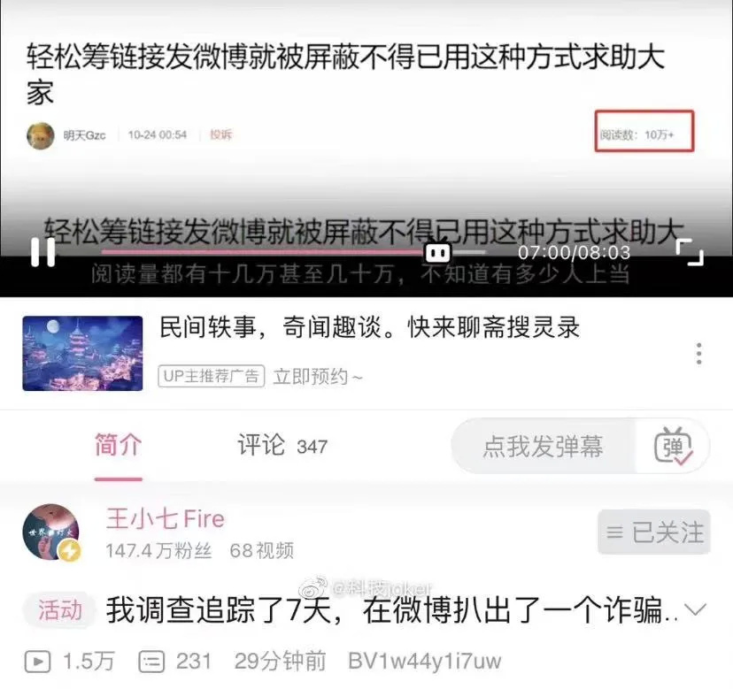 10月26日,网名为“王小七Fire”的博主发布一则视频,直指有人把重病孩子当成赚钱工具,“我追踪了7天,在微博扒出了一个诈骗团伙。”