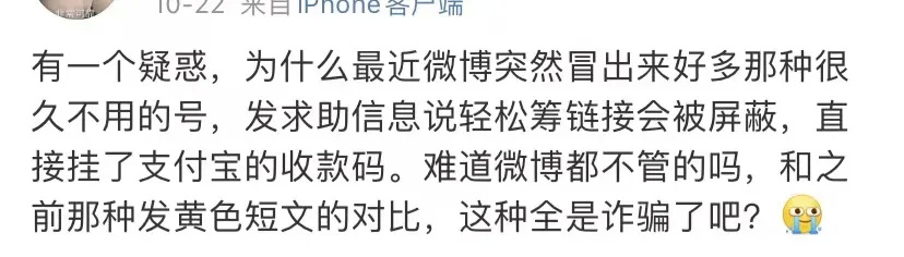 微博ID名为“人不帅三观正的蓝孩子”的网友发文表示,目前已有多人受骗,他们之前就曾利用文章附带的收款码在支付宝上进行举报,也通过微博上投诉举报等方式,防止这些盗取他人信息行骗者继续骗人,有的微博用户表示几个举报已成功,“但是平台上仍是充斥着不少的这样的诈骗信息。”