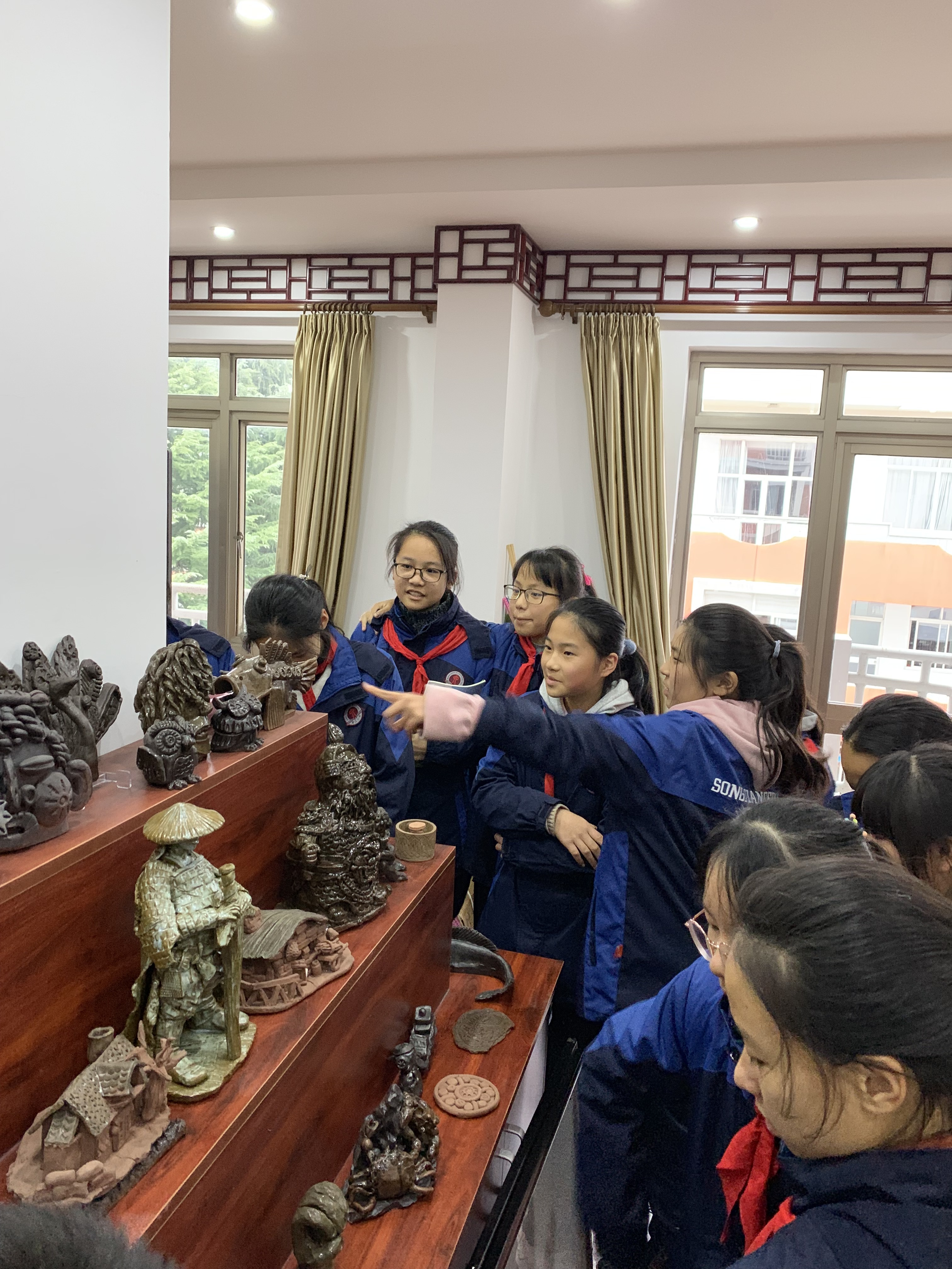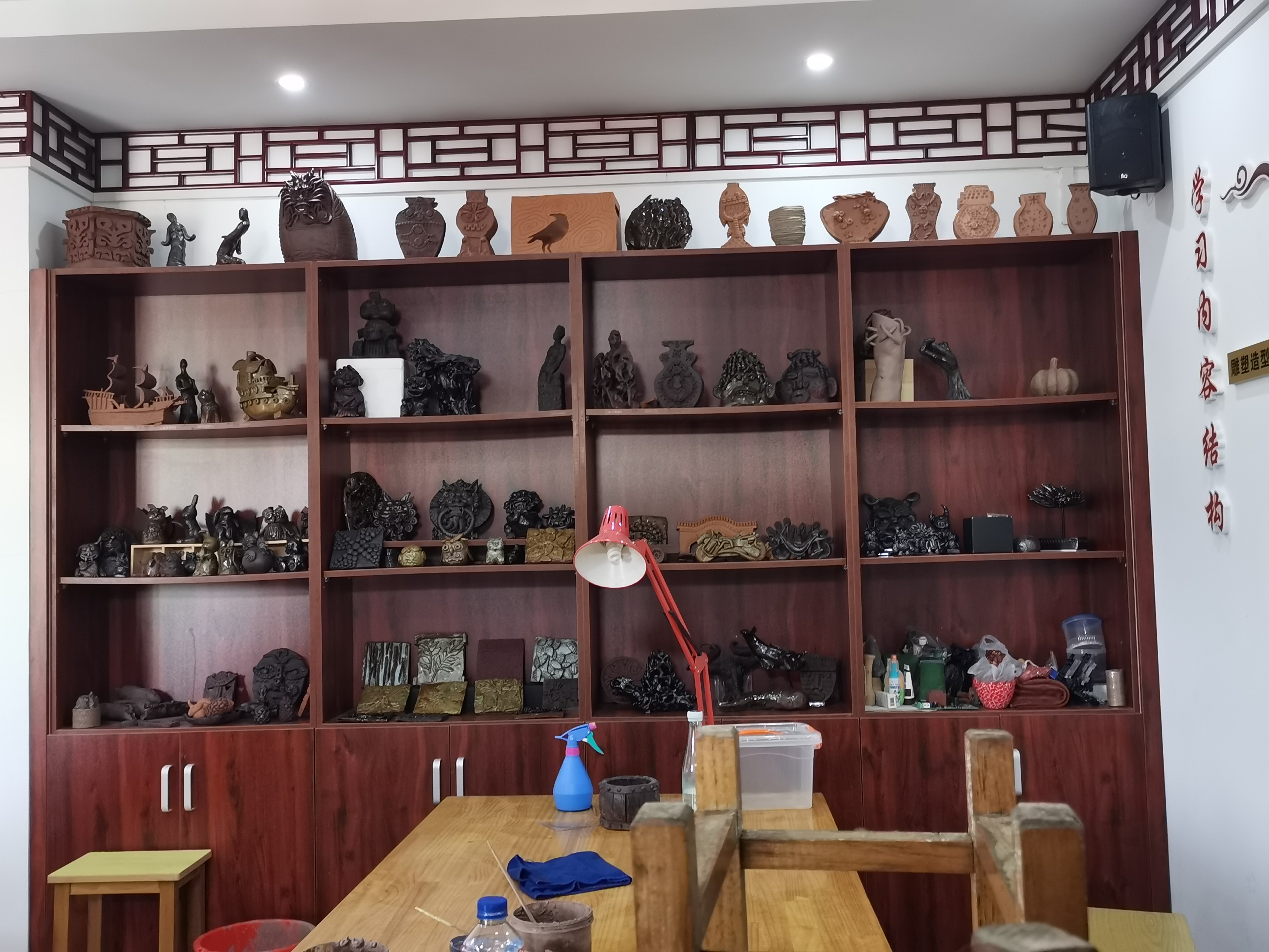 在尚塑阁,每届学生都会尝试泥板卷曲、泥板镶接、捏塑等造型方法,在团、压、捏、搓等手捏技法中体味制作泥塑的快乐。而今,推开尚塑阁暗红色中式木门,陈列柜上琳琅满目的泥塑作品常常会让观者误以为进入了一个艺术作品展示馆,而那些富含艺术气息的作品都出自六中历届学生之手。四季更迭,泥塑作品越积越多,碍于场地有限,很多作品都被装进了收纳箱。“两三千件肯定有的。”柯晨说,这几年,学校为了成就孩子们的兴趣爱好投入了不少资金,目前在使用的全自动化电窑就是今年刚刚添置的。