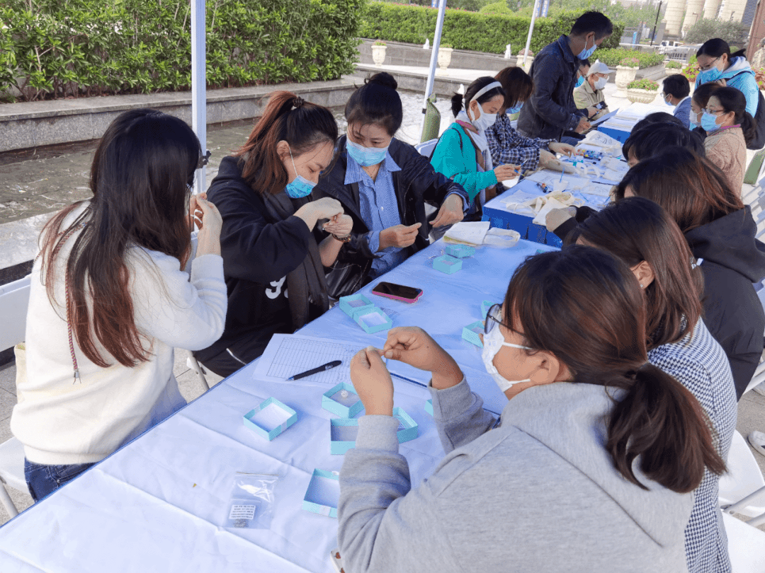 最后,乐业新技能体验点位还在现场进行手绘帆布袋、珍珠饰品DIY两款手作技能体验课,吸引了众多求职者参与。