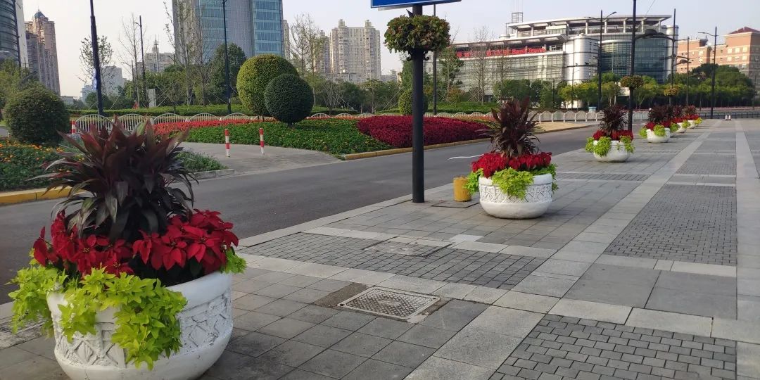 为迎接第四届进博会,浦东新区绿化部门在区内各个重要点位共布置了超过2万平方米的草花坛、4000多个花箱花钵、百余组灯杆挂花。其中包括砂岩广场、金科路龙东大道口景点、世纪大道沿线、金科路龙东大道路口、丹桂路吕家浜绿地等。