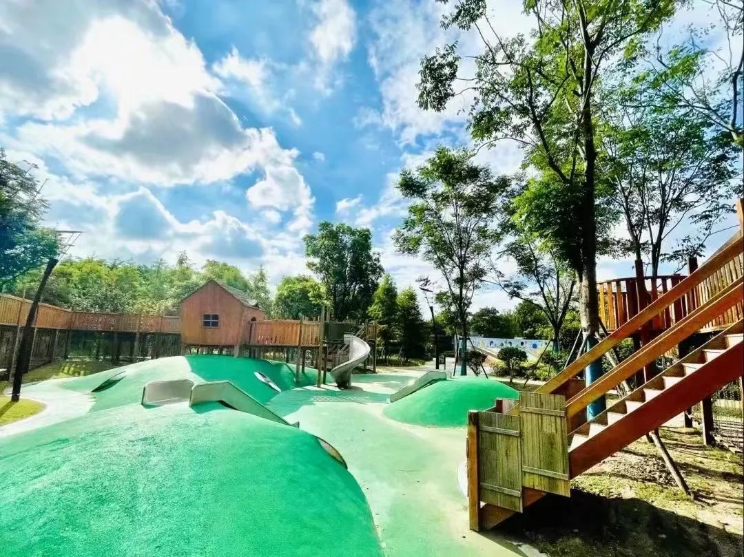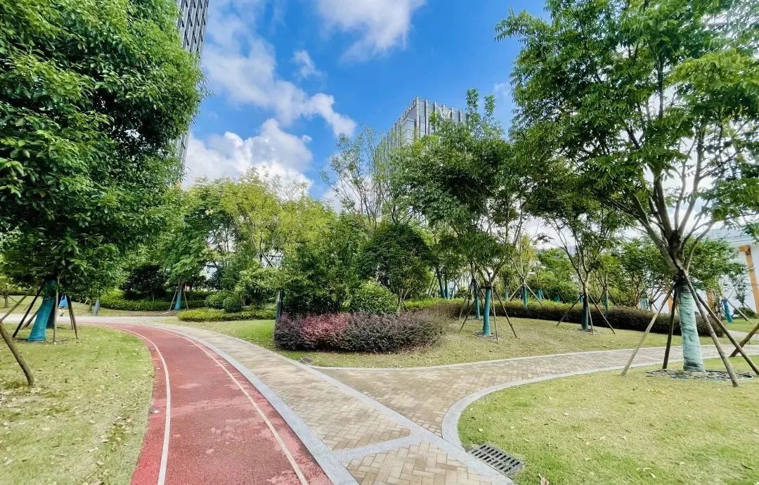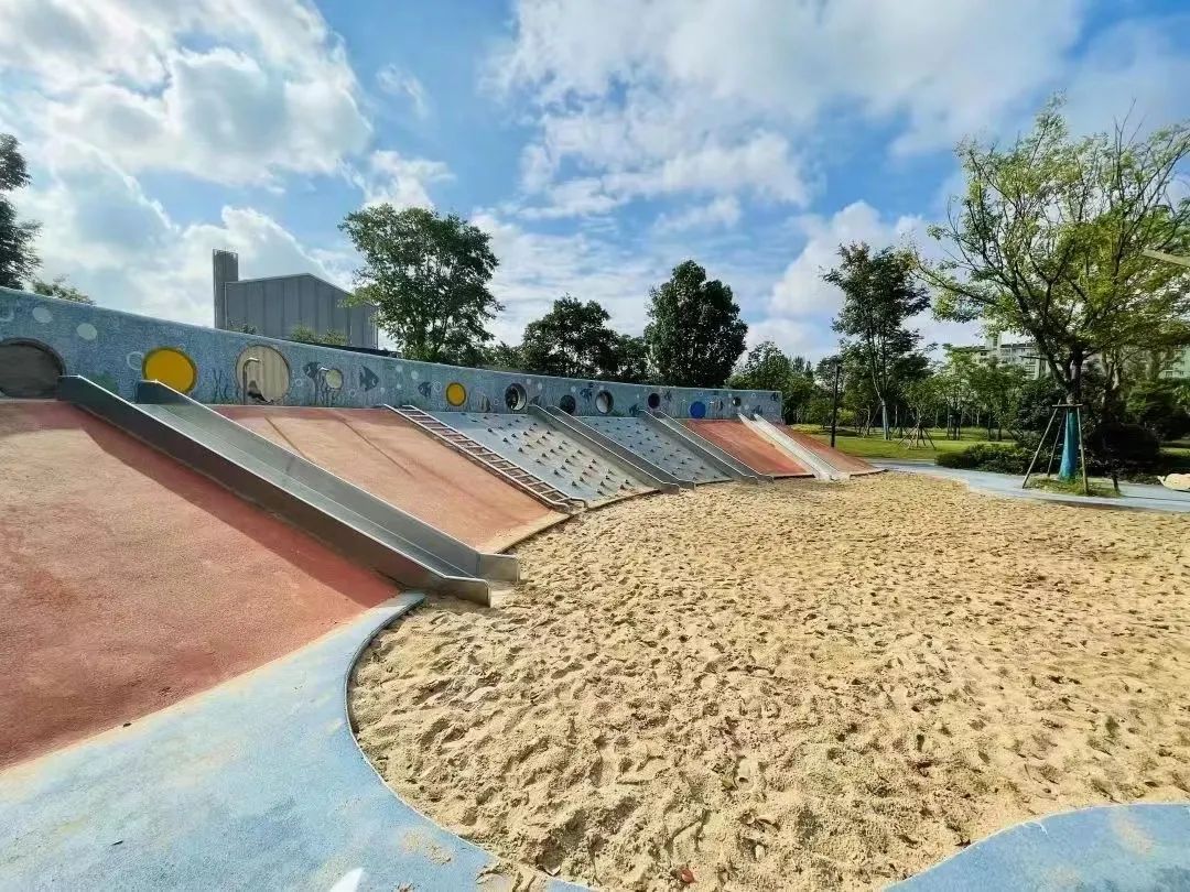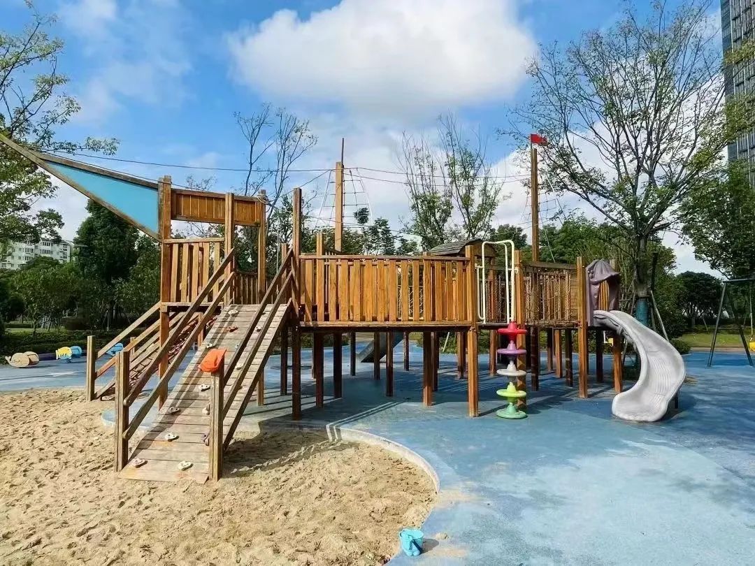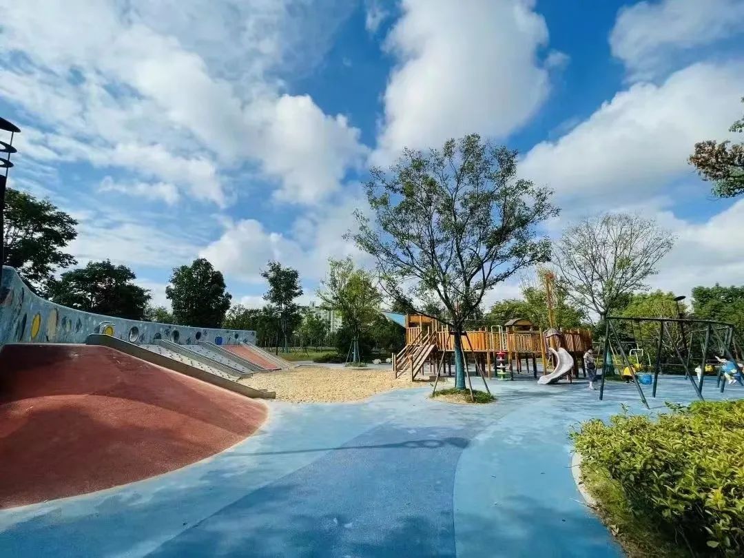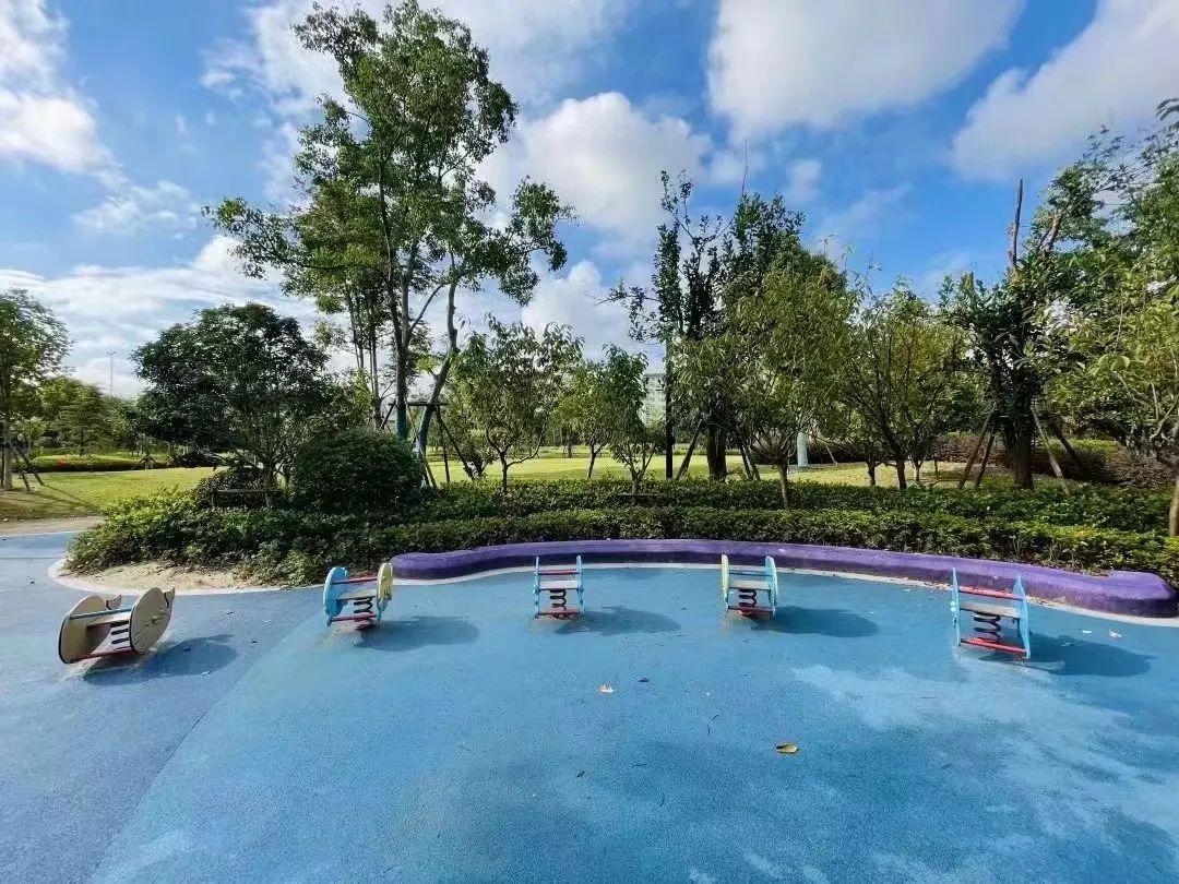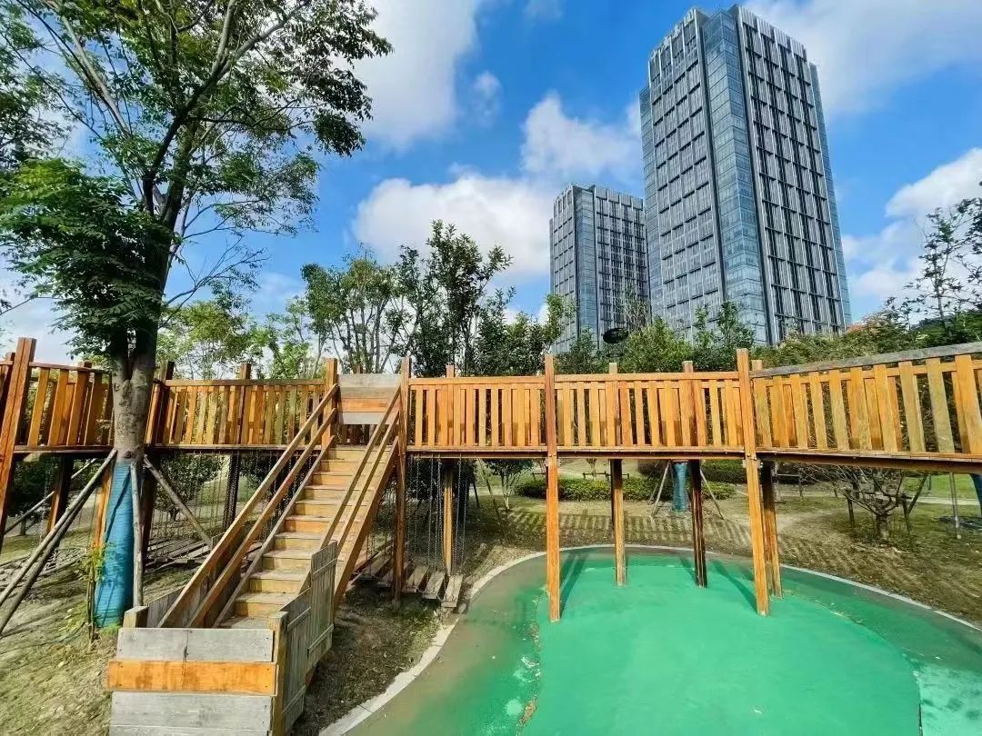 中庚绿地也是小孩的天堂,这里有两个趣味儿童乐园,温度适宜的秋季,小孩子们也能在这里感受到户外锻炼的快乐。